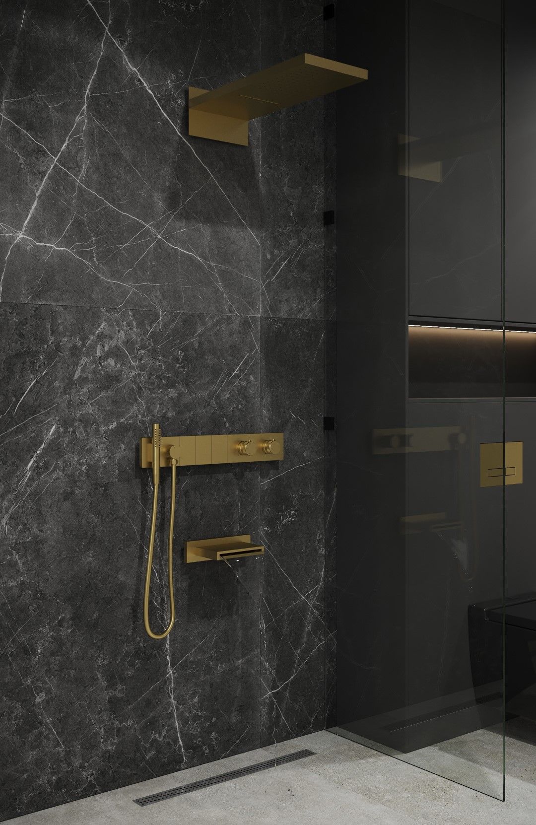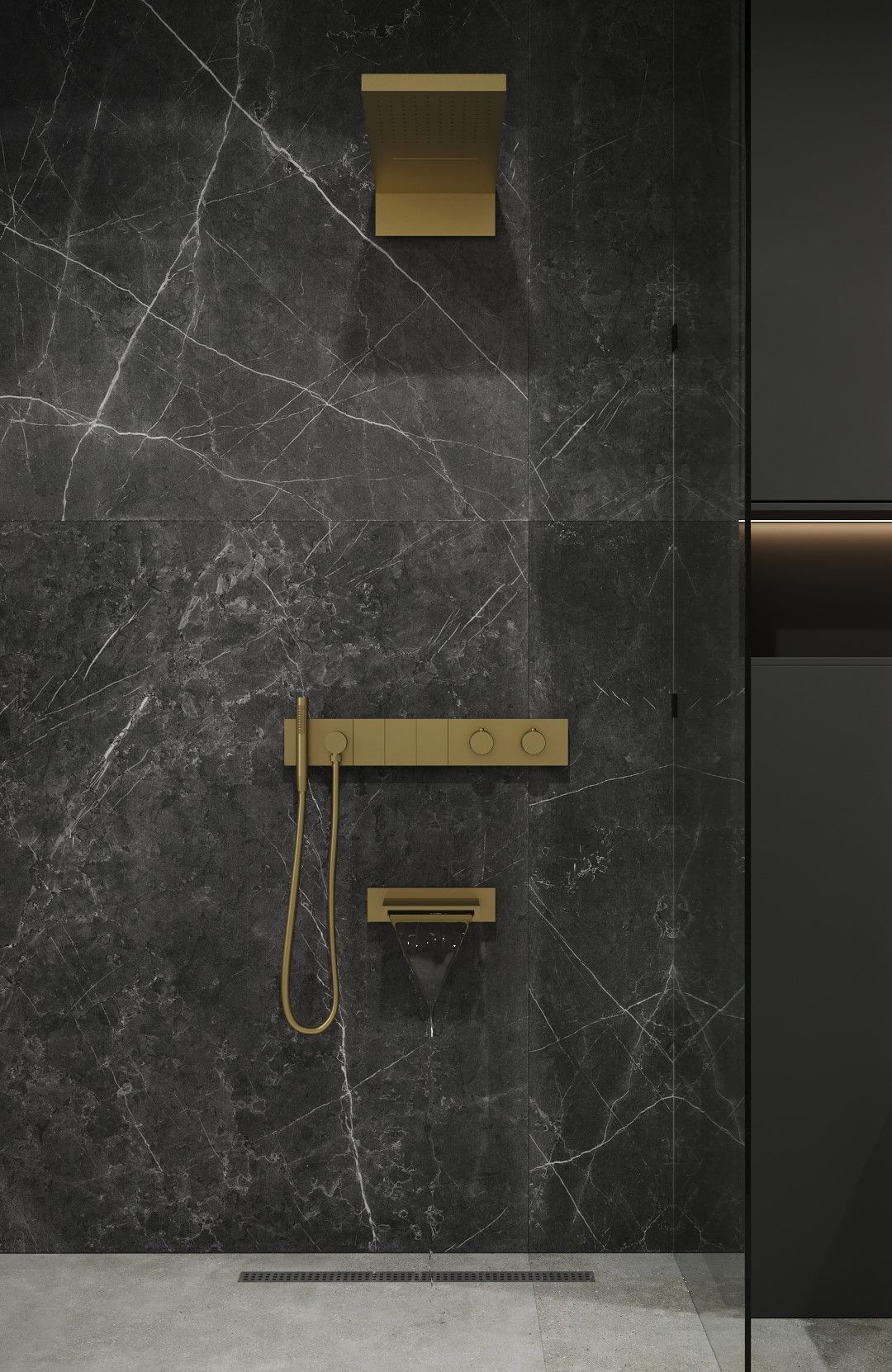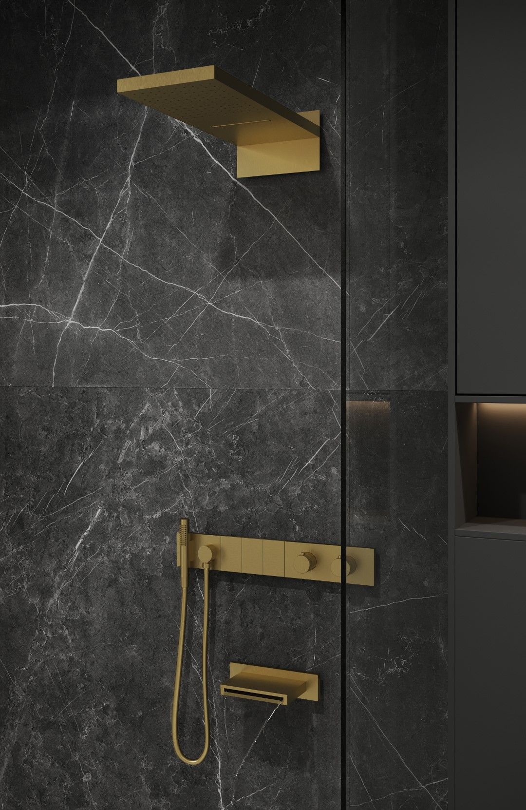 Душевая система скрытого монтажа BOHEME Zodiac 133-2-MG трехпозиционная Matt Gold с термостатом и изливом