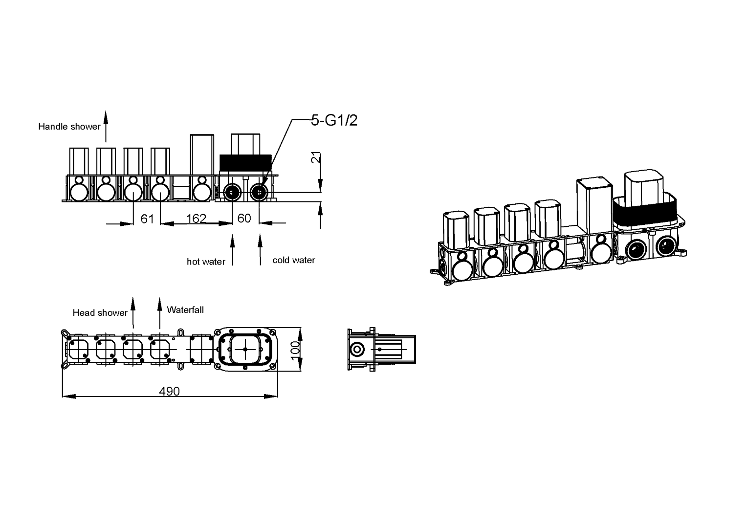 | Размер верхнего душа, см | 550*250 |