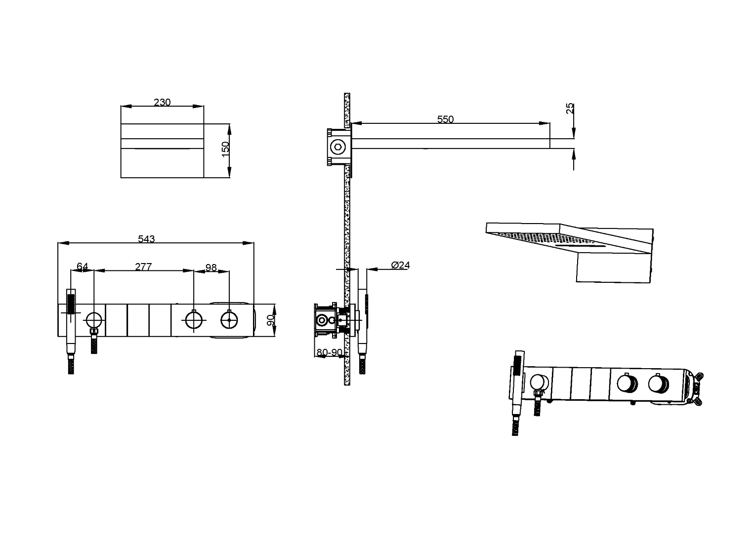 | Размер верхнего душа, см | 550*250 |