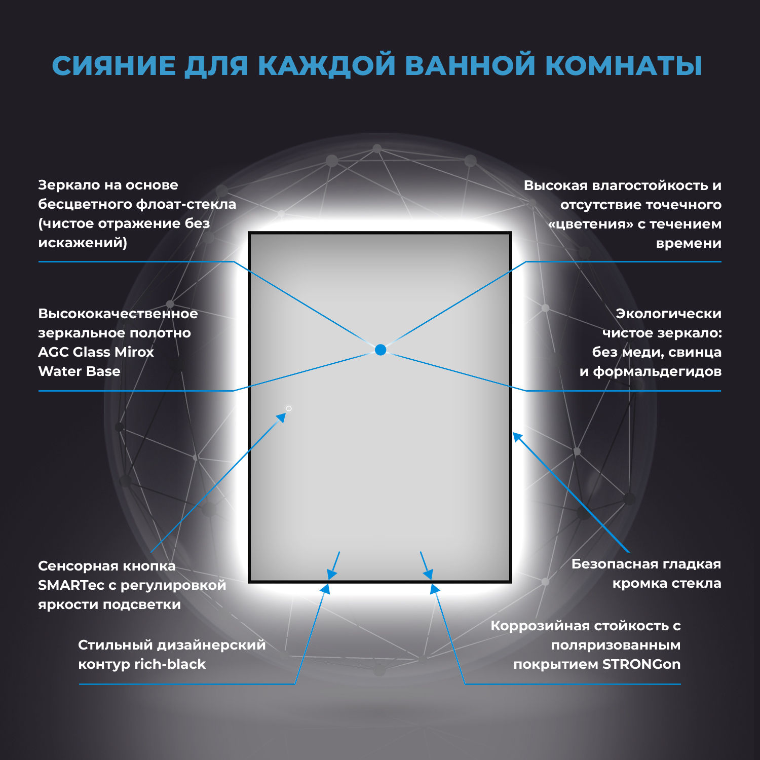 Зеркало Wellsee 7 Rays' Spectrum 172201000 с фоновой LED-подсветкой (70×90 см)