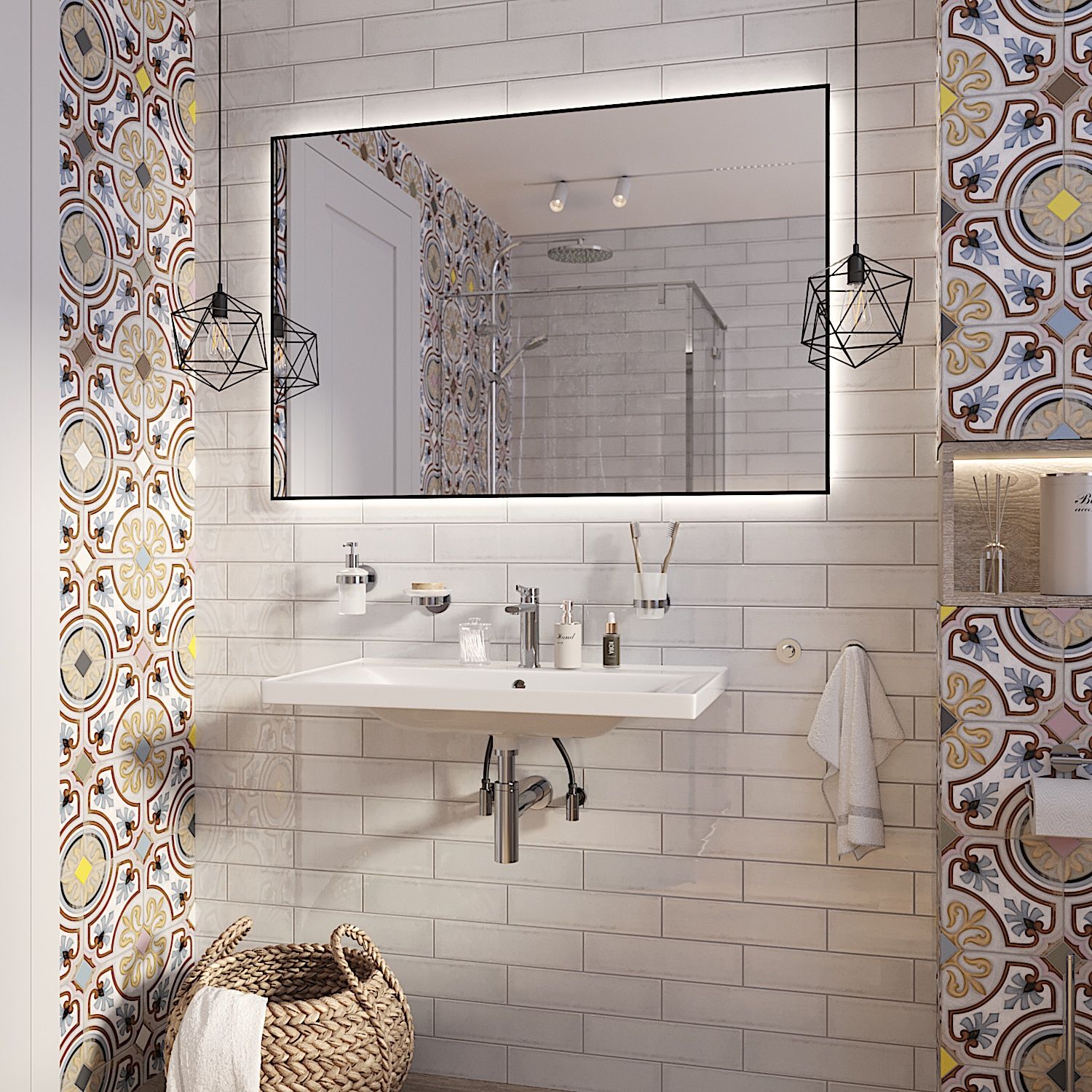 Зеркало Wellsee 7 Rays' Spectrum 172201010 с фоновой LED-подсветкой (90×70 см)