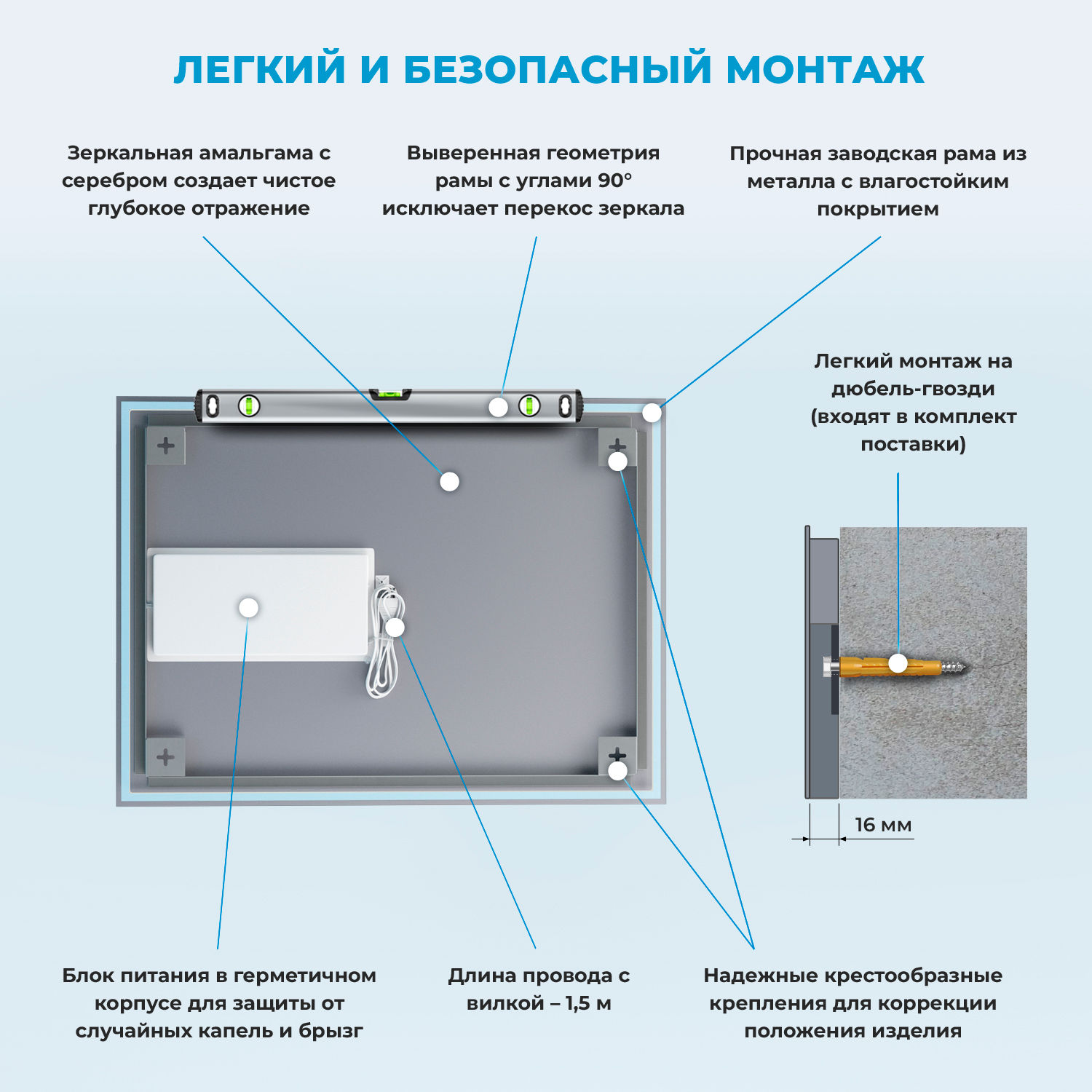 Зеркало Wellsee 7 Rays' Spectrum 172201390 с фронтальной LED-подсветкой (100×80 см)