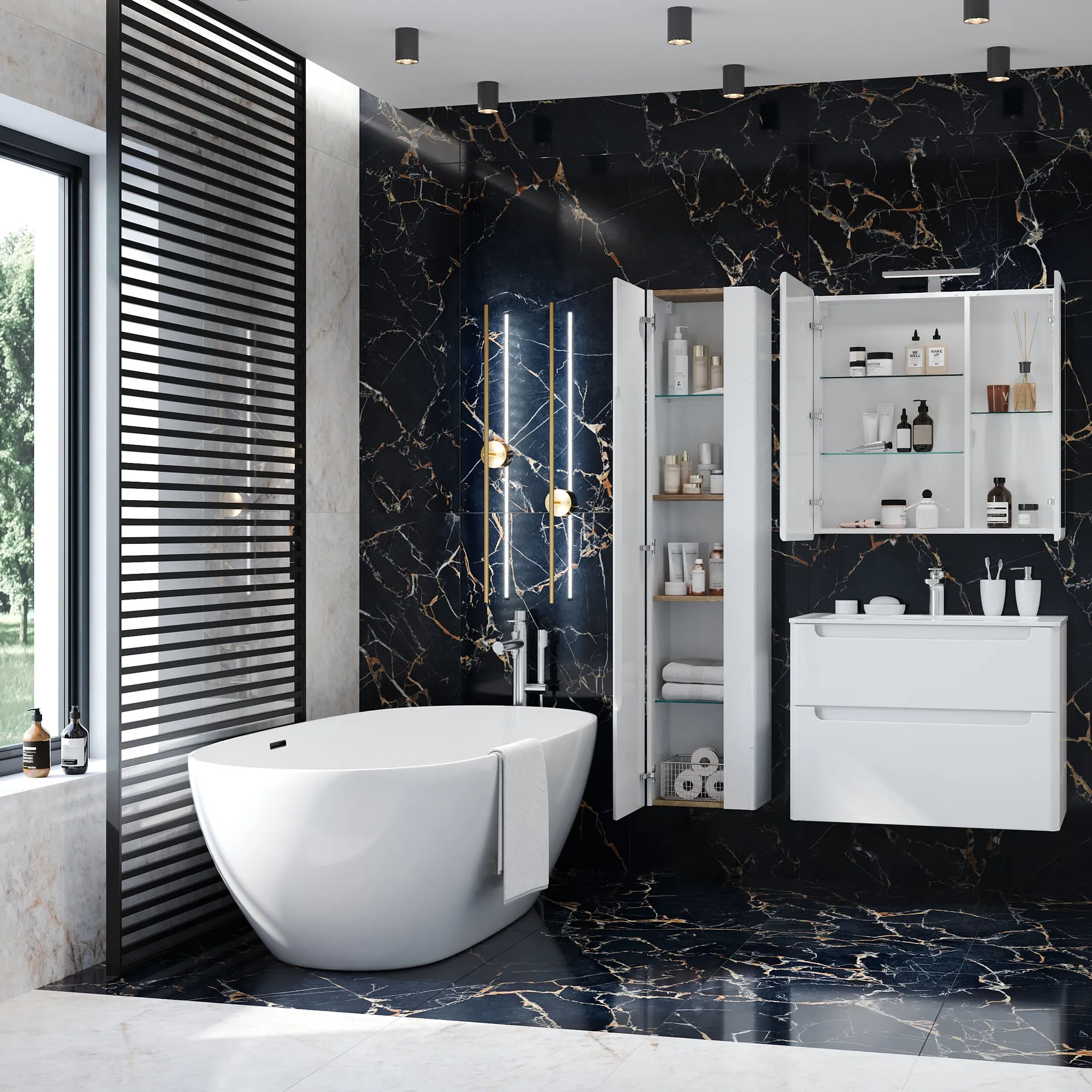 Распашные дверцы шкафа открываются с легкостью, а за ними скрываются полки, идеально подходящие для хранения косметики и других необходимых принадлежностей. Этот шкаф не только добавит удобство, но и создаст ощущение простора и света в вашей ванной комнате.