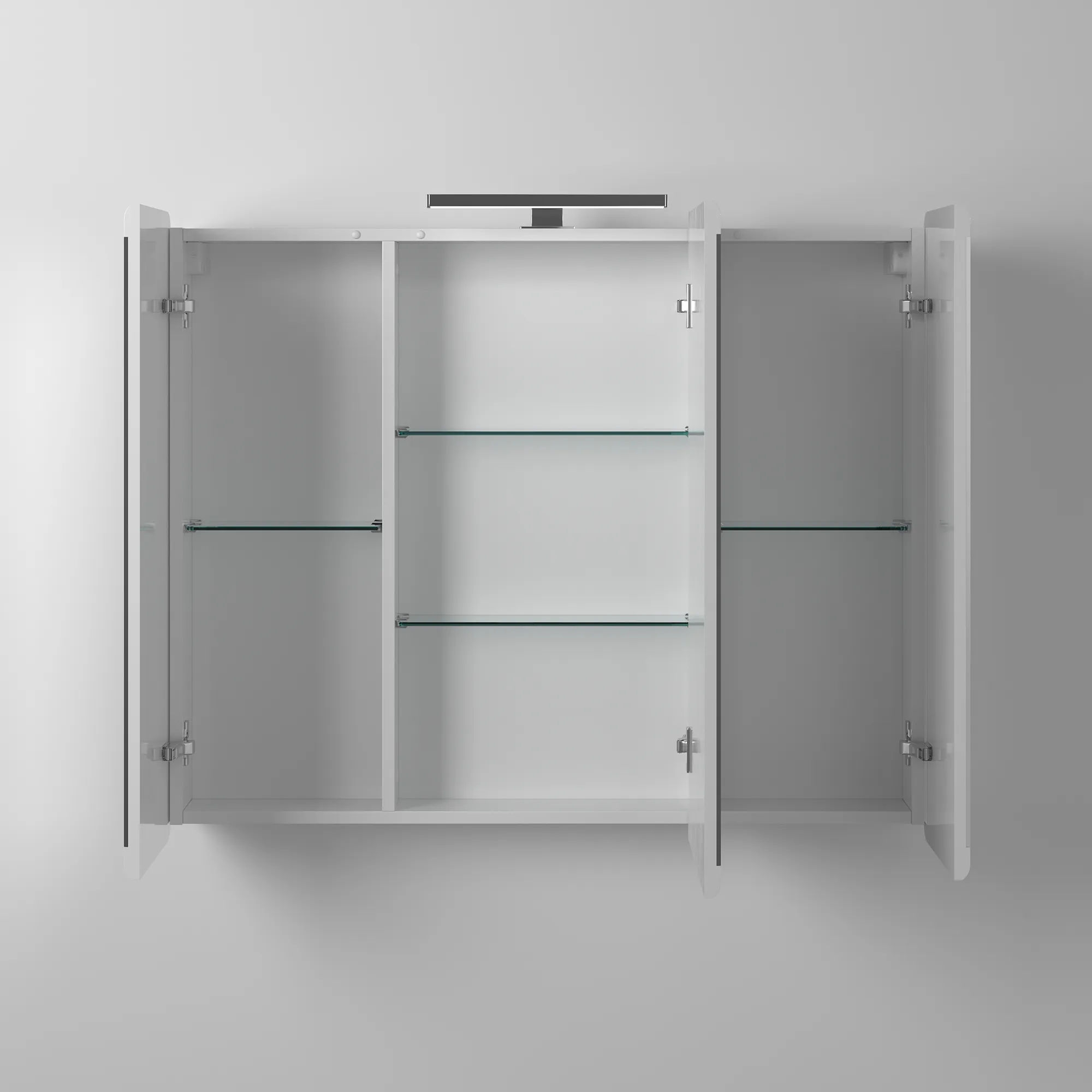 Изготовленный из влагостойкого полотна AGS Flat Glass Europe «Glaverbel», этот зеркальный шкаф гарантирует долговечность и устойчивость к влаге, что делает его идеальным выбором для ванной комнаты. Фасад шкафа выполнен из высококачественного зеркала, а корпус — из прочного ЛДСП с эмалью, что обеспечивает легкость в уходе и долговечность.