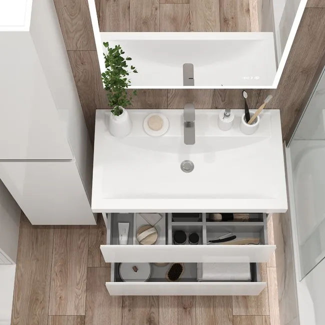 Тумба BRIZ Элен классик 70 с раковиной Фостер оснащена двумя выдвижными ящиками, которые оборудованы тандемами частичного выдвижения и системой плавного, бесшумного закрывания Blumotion от известной компании Blum. Это обеспечивает не только комфортное использование, но и долговечность механизмов.