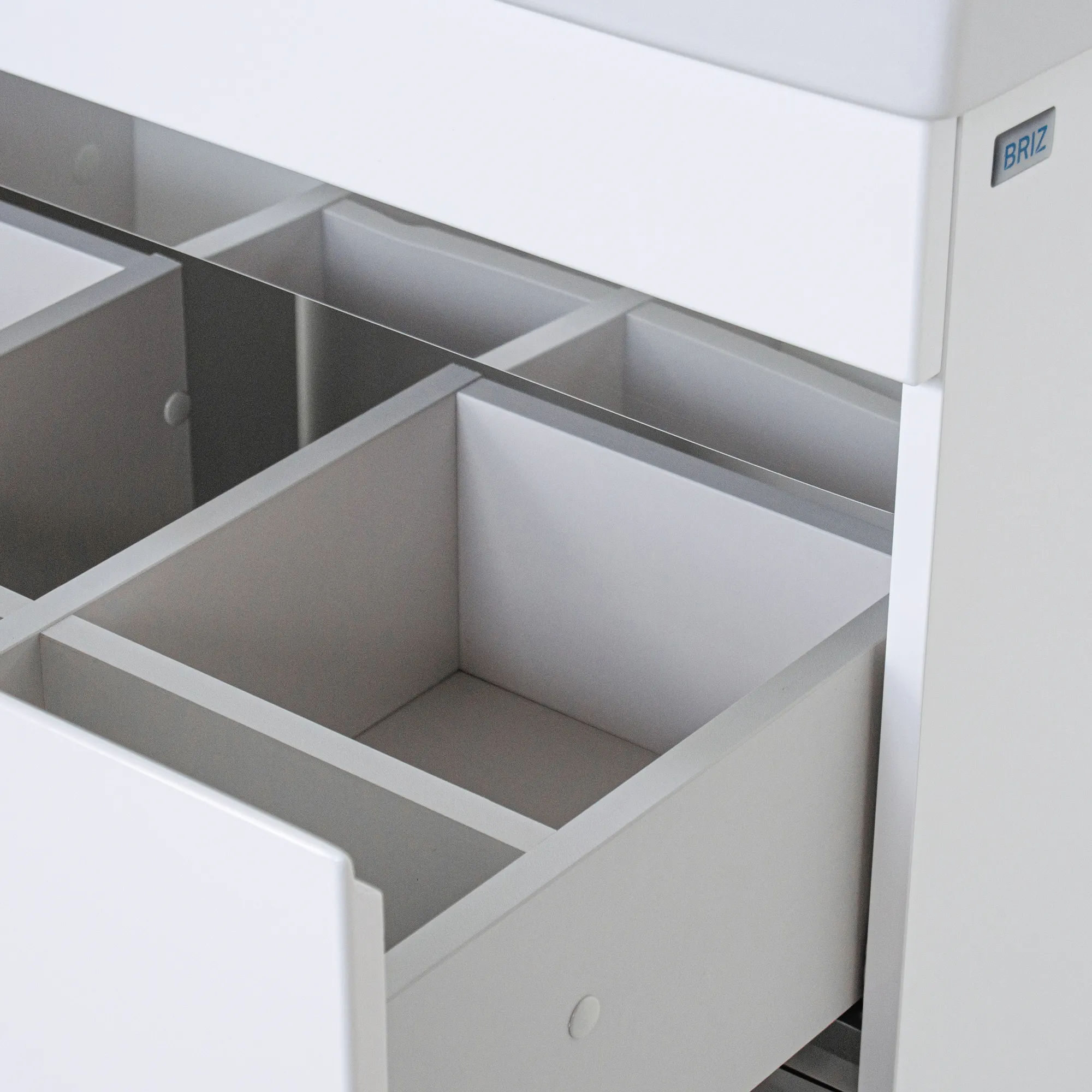 Тумба BRIZ Элен классик 80 с раковиной Фостер оснащена двумя выдвижными ящиками, которые оборудованы тандемами частичного выдвижения и системой плавного, бесшумного закрывания Blumotion от известной компании Blum. Это обеспечивает не только комфортное использование, но и долговечность механизмов.