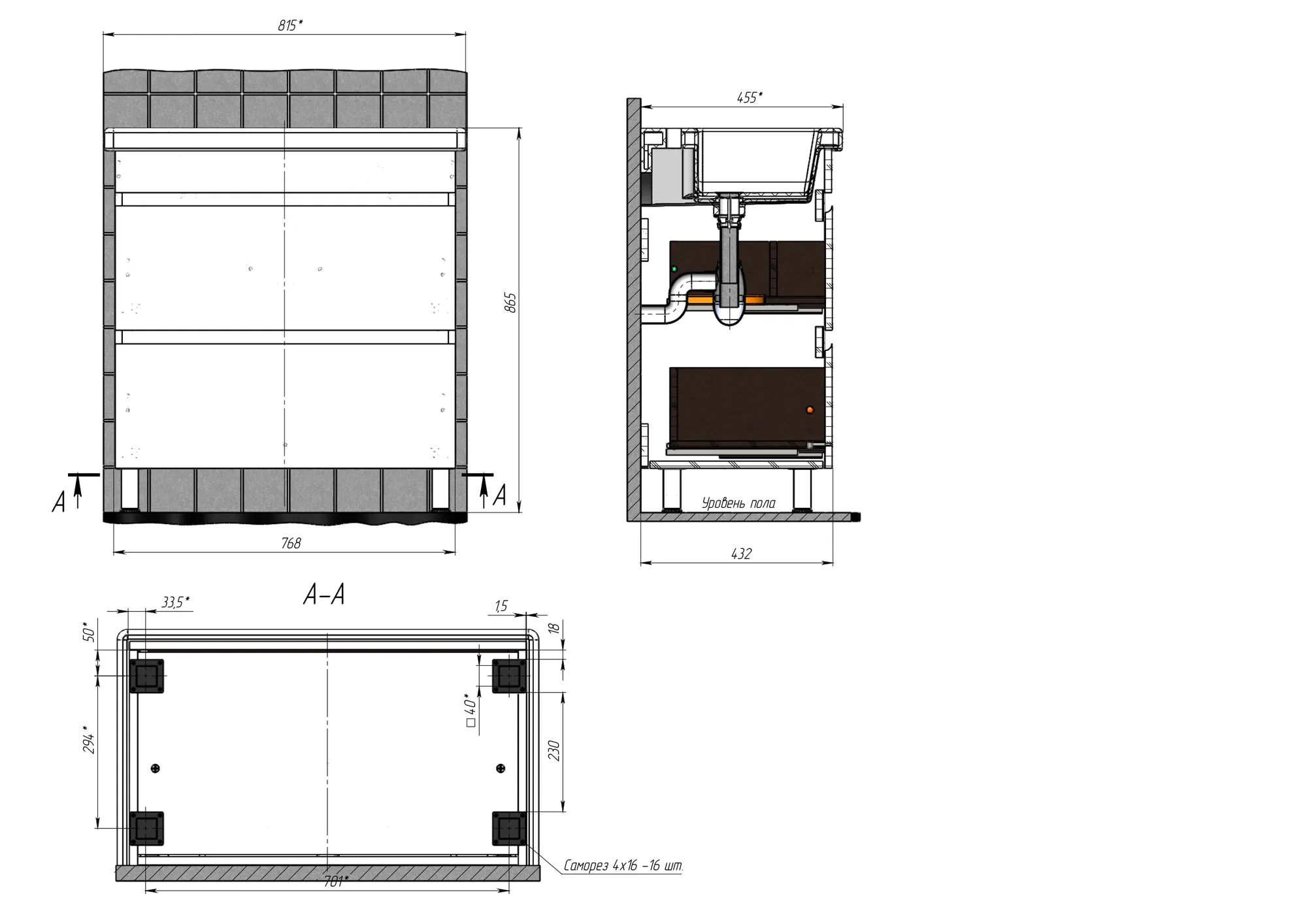 Монтаж тумбы осуществляется напольным способом, что обеспечивает ее стабильность и надежность. Фасад выполнен из МДФ с эмалью, а каркас — из прочного ЛДСП с эмалью, что гарантирует долговечность и легкость в уходе.