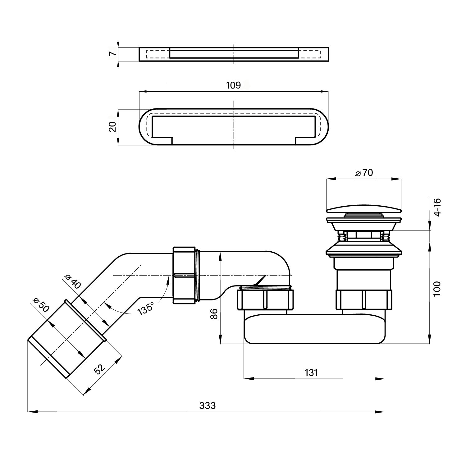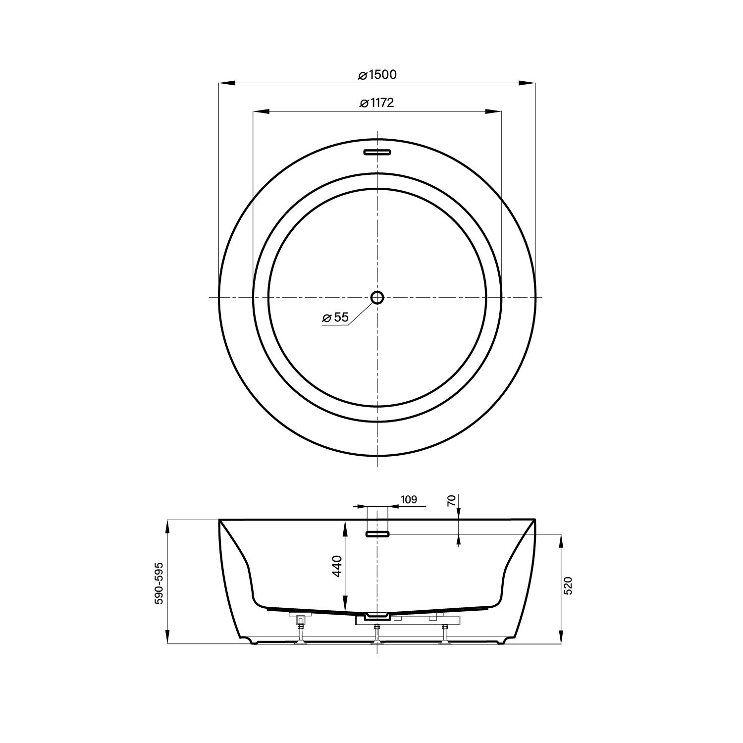 | Расположение перелива | По центру |