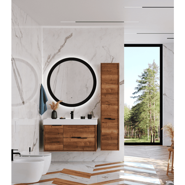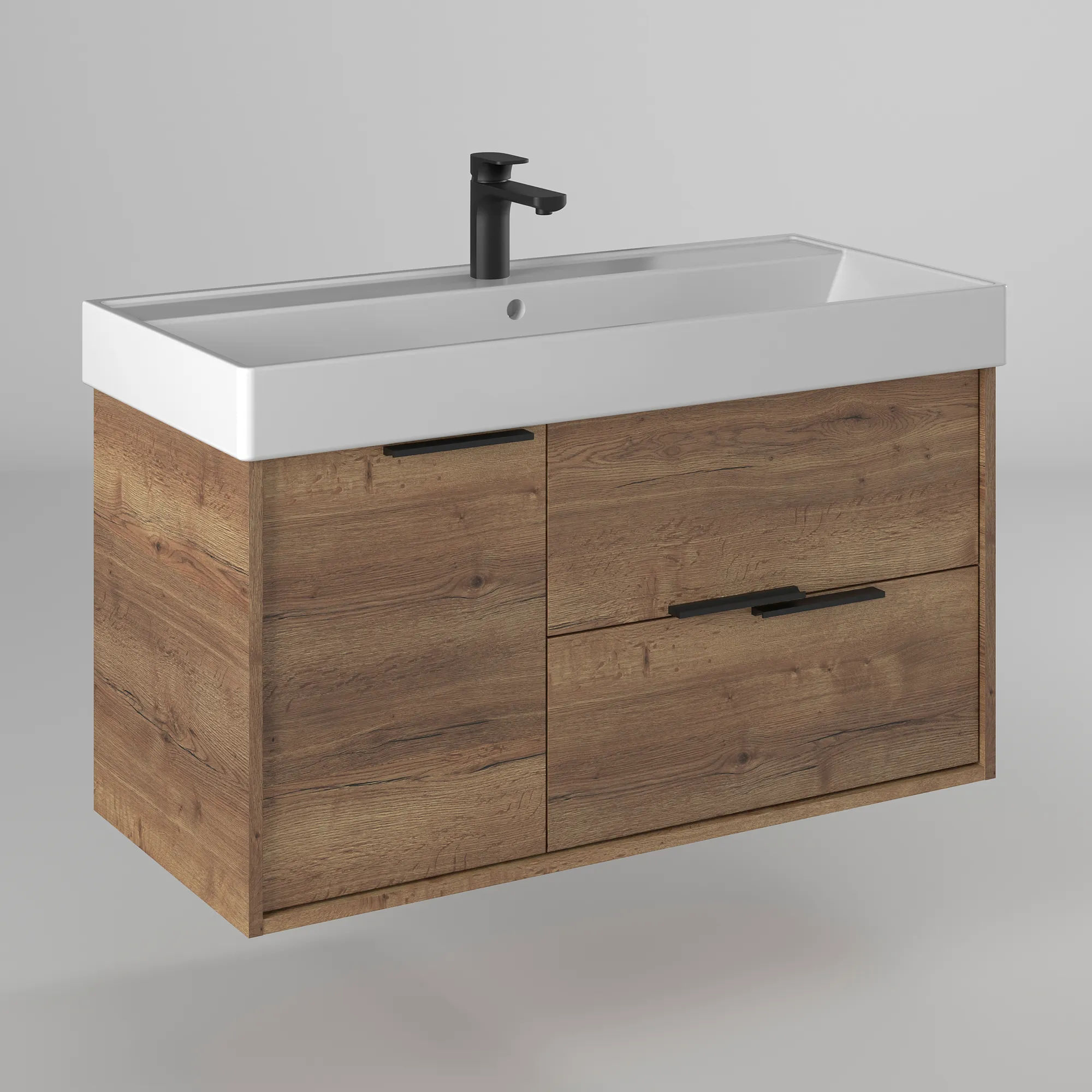 Тумба с раковиной BRIZ Тесо 100 подвесная + Вилис / 243 03-20100-17 00 ВЕЛ дуб веллингтон табак