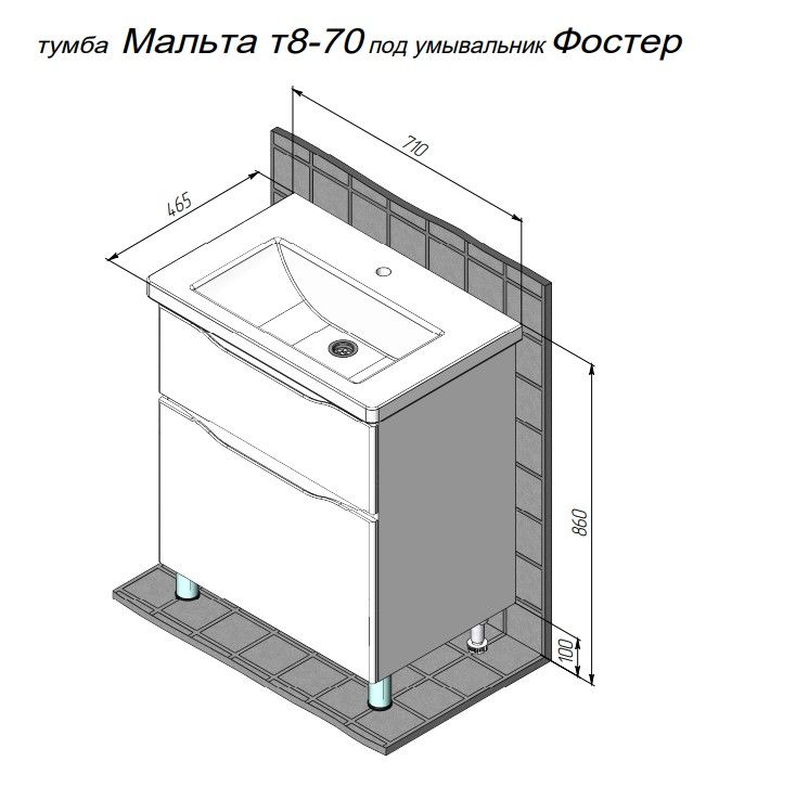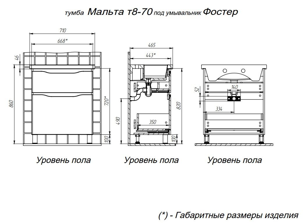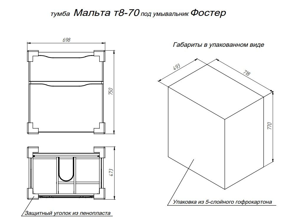 Тумба с раковиной BRIZ Мальта 70 2 ящ. + Фостер / 365 03-08070-06 00 БЕЛ