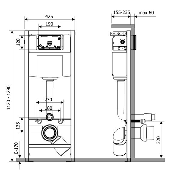 Универсальная система креплений позволяет устанавливать инсталляцию как «прямым», так и «угловым» способом, адаптируясь под любые условия помещения. Смывной бачок полностью защищен от конденсата, что предотвращает образование плесени и сохраняет чистоту внутри конструкции.