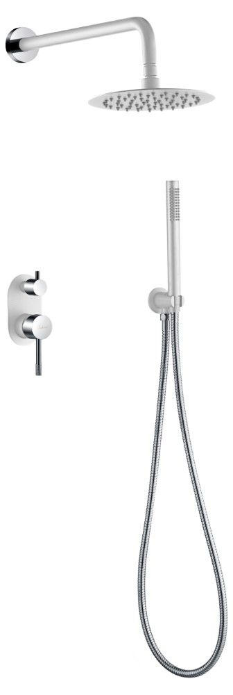 В систему для душа скрытого монтажа входит: смеситель, верхний душ 30 см, ручной душ.