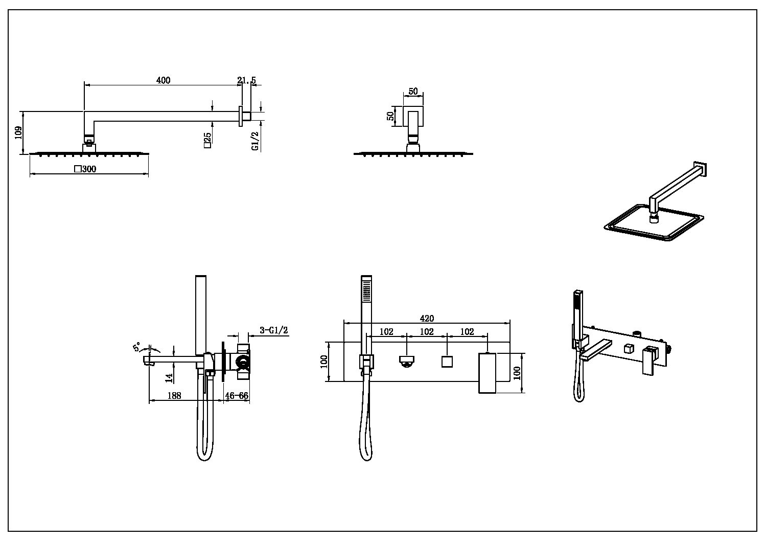 | Размер верхнего душа, см | 300*300 |