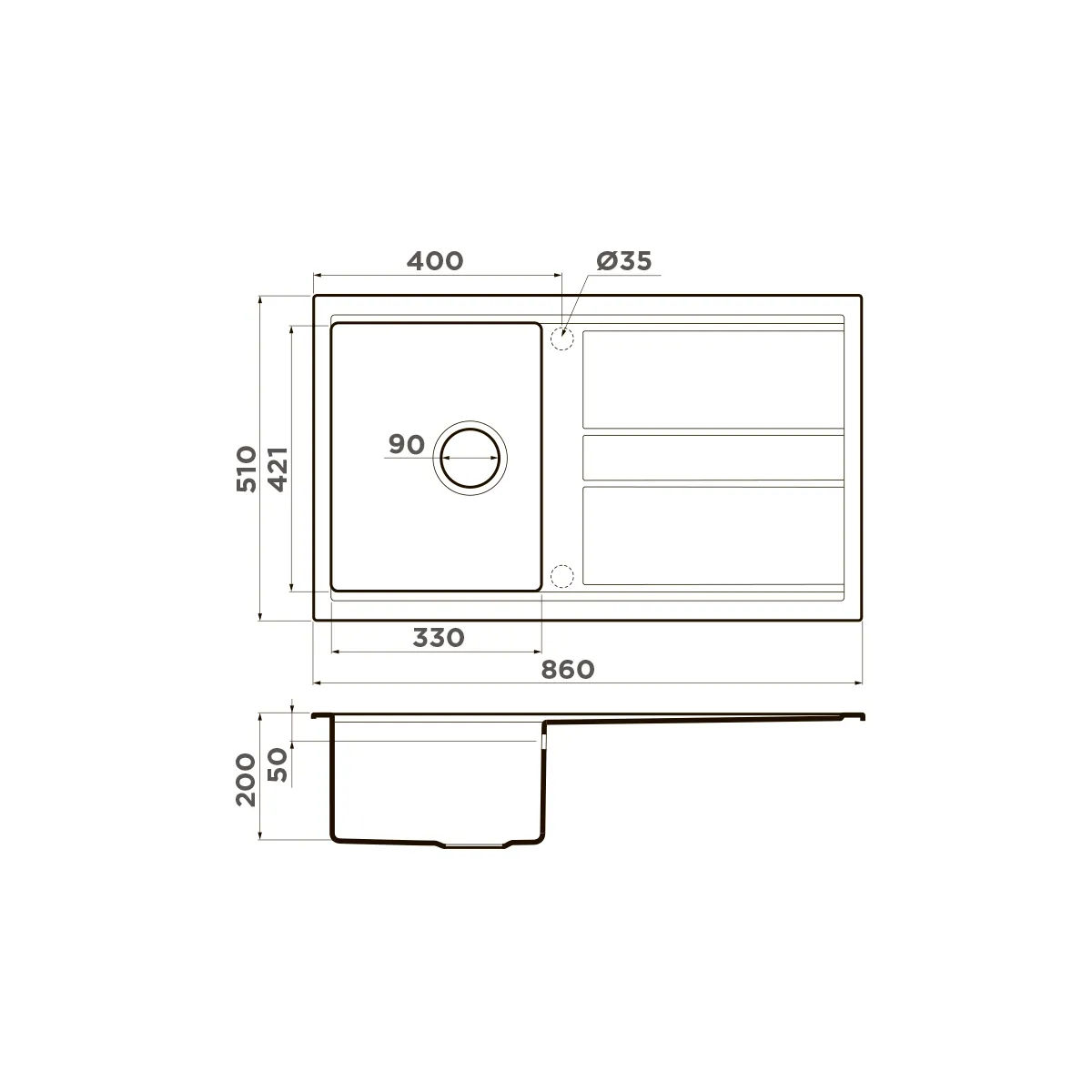 | Толщина материала мойки, мм | 6 |