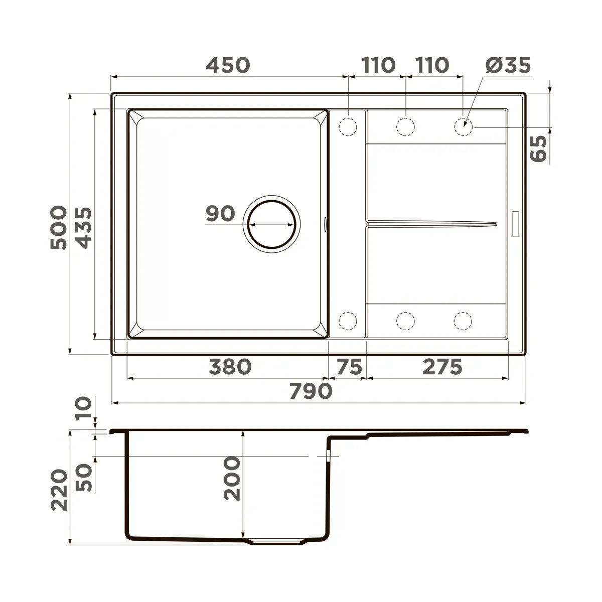 | Толщина материала мойки, мм | 10 |