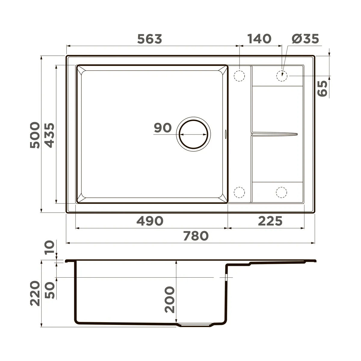 | Толщина материала мойки, мм | 10 |