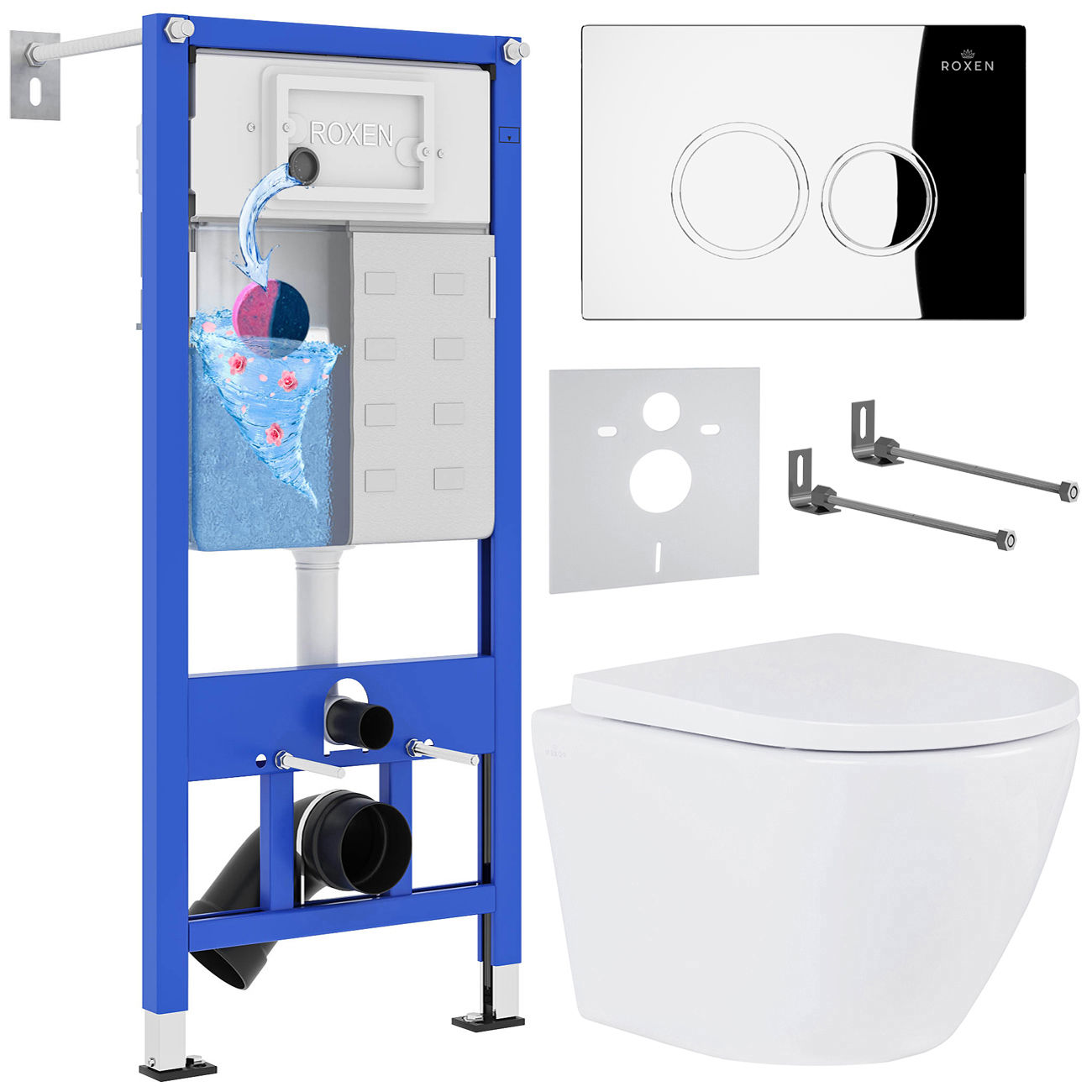 Унитаз подвесной с инсталляцией Roxen StounFix Dual Fresh 512989 6 в 1 (состоит из: 710200, Santi 410260CH, 530185-02)