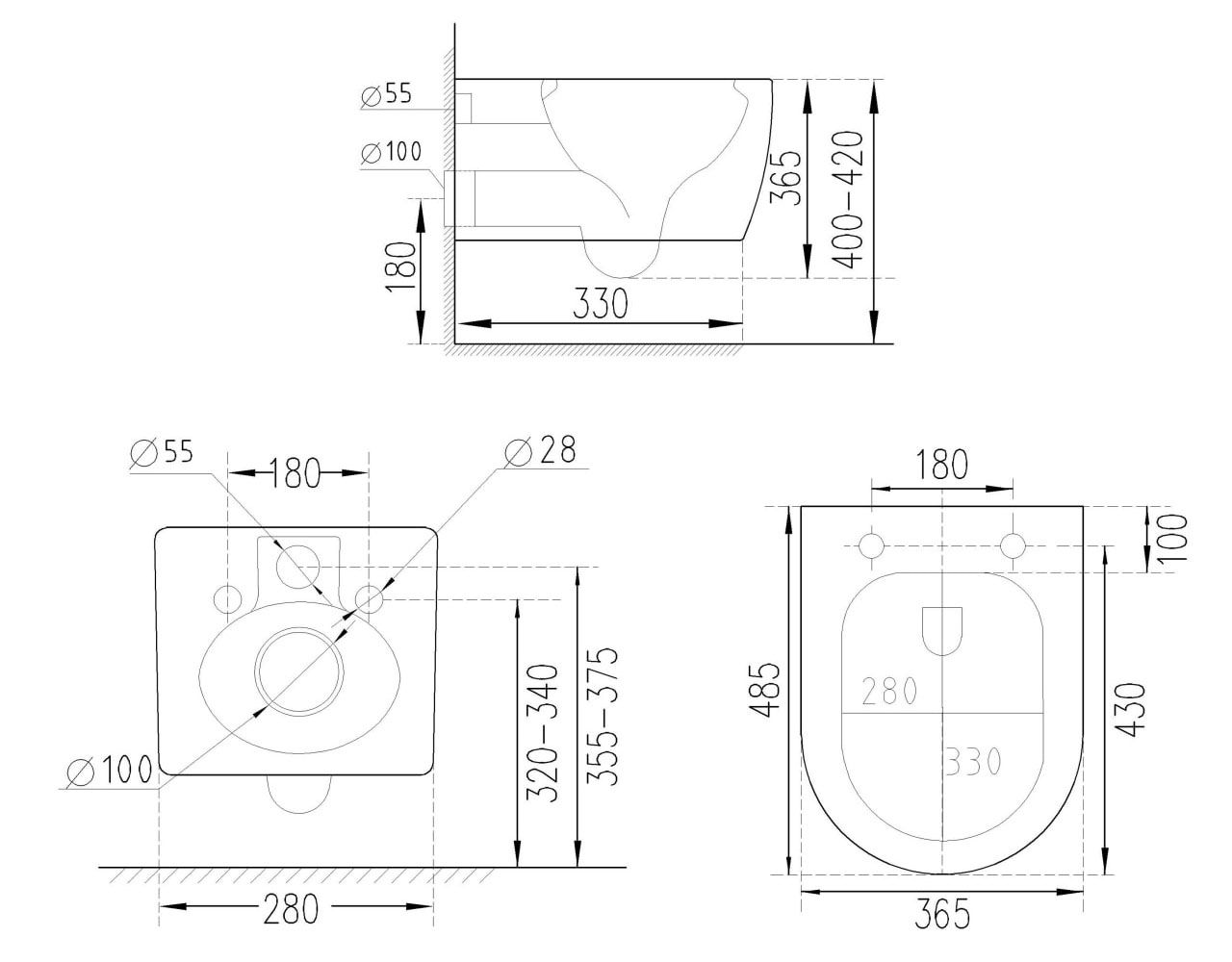 | Высота унитаза, см | 36.5 |