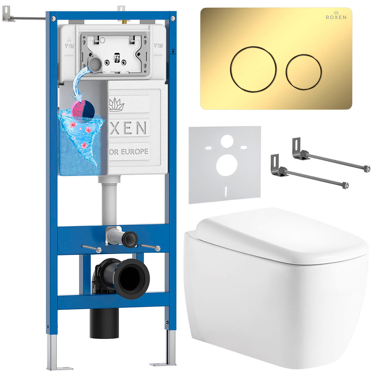 Унитаз подвесной с инсталляцией Roxen StounFix Dual Fresh 868486 6 в 1 (состоит из: 710200, Steel 420260-CHG, 530220-02)