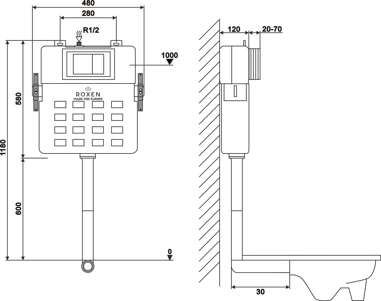 | Ширина инсталляции, см | 48 |