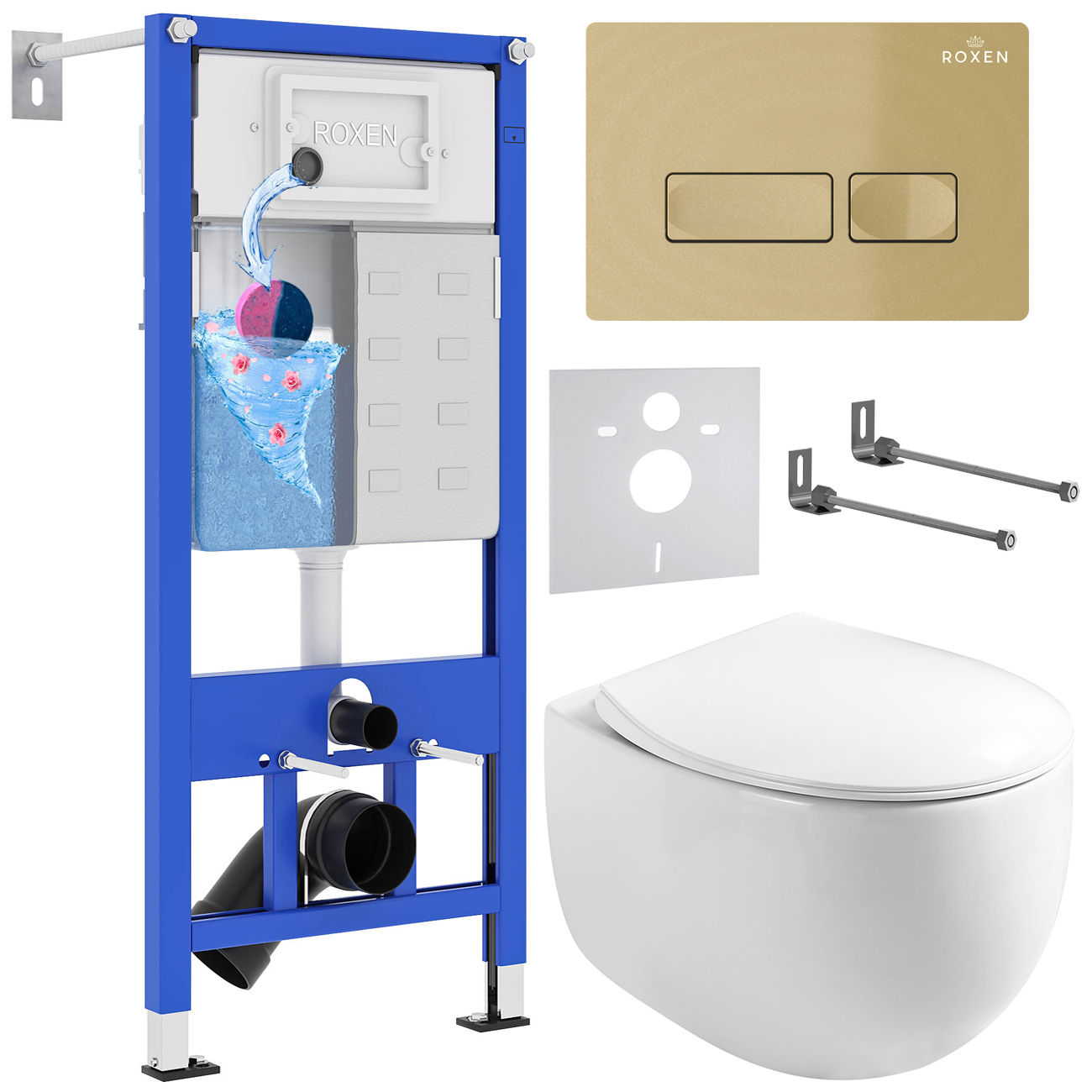 Унитаз подвесной с инсталляцией Roxen StounFix Dual Fresh 968085 6 в 1 (состоит из: 710200, Caspia 410280GB, 530170-01)