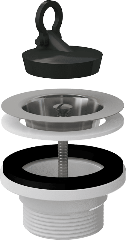 В комплекте: корпус слива, пробка из ПВХ, сливная решетка из нержавеющей стали.