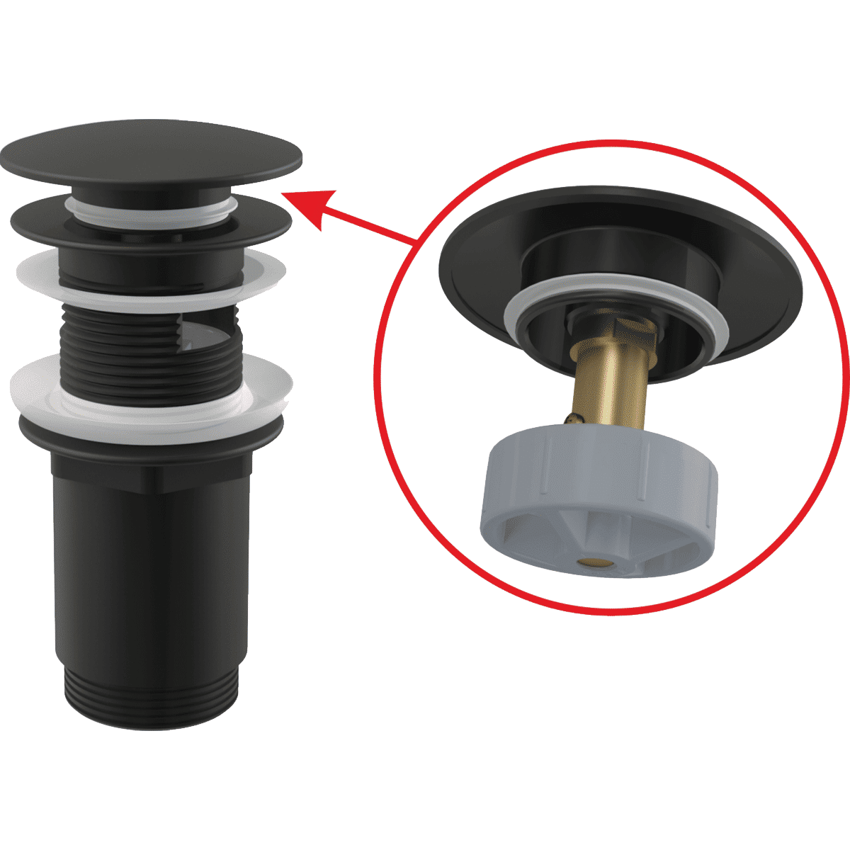 Донный клапан AlcaDrain (AlcaPlast) A392BLACK для умывальника click-clack 5/4" — идеальное сочетание стиля и функциональности! Этот цельнометаллический клапан с черной заглушкой и функцией перелива выполнен с обработкой поверхности в черном матовом цвете, что придаст вашему умывальнику современный вид.