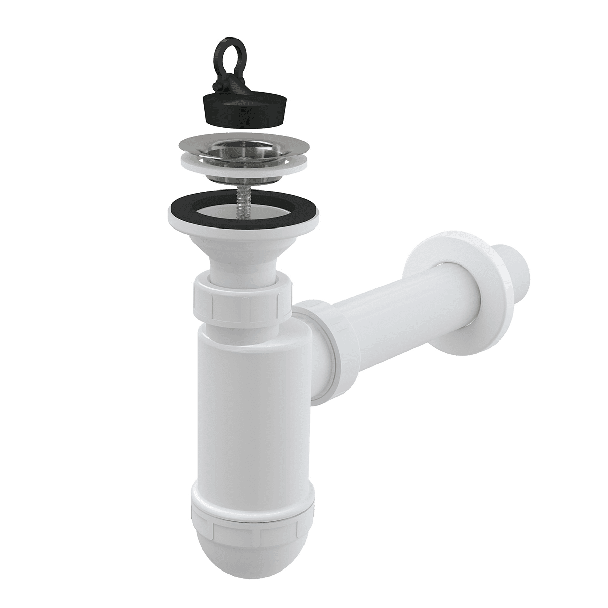 В комплекте: корпус сифона, пробка из ПВХ, сливная решетка из нержавеющей стали, обрамление пластиковое.