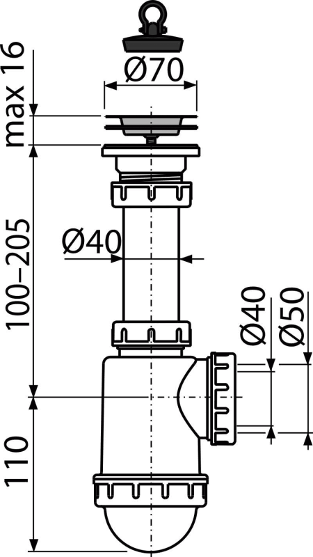 Сифон для мойки AlcaDrain (AlcaPlast) A441-DN50/40 c нержавеющей peшeткой DN70