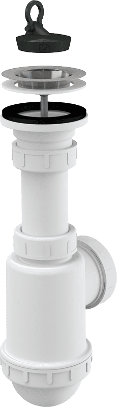 В комплекте: корпус сифона, пробка из ПВХ, сливная решетка из нержавеющей стали.