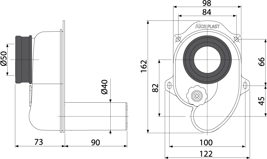 Сифон для писсуара AlcaDrain (AlcaPlast) A45B пренданзначен для писсуара с горизонтальным сливом сзади и для скрытого монтажа в стену.