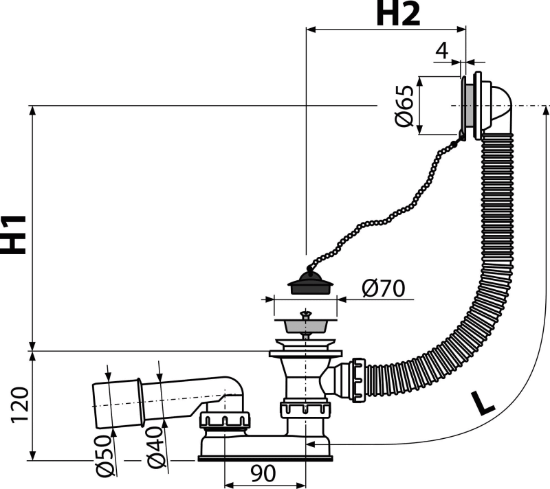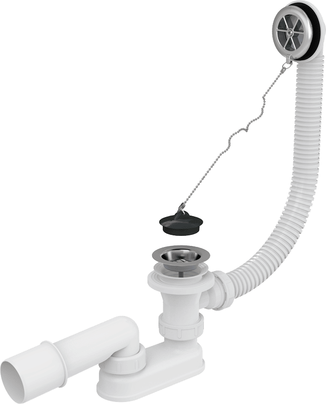 Сифон для ванны AlcaDrain (AlcaPlast) A501-BL-01 хром подходит для: слива воды из ванны в канализационный сток, ванн стандартных размеров, ванн со стоковым отверстием 52 мм.