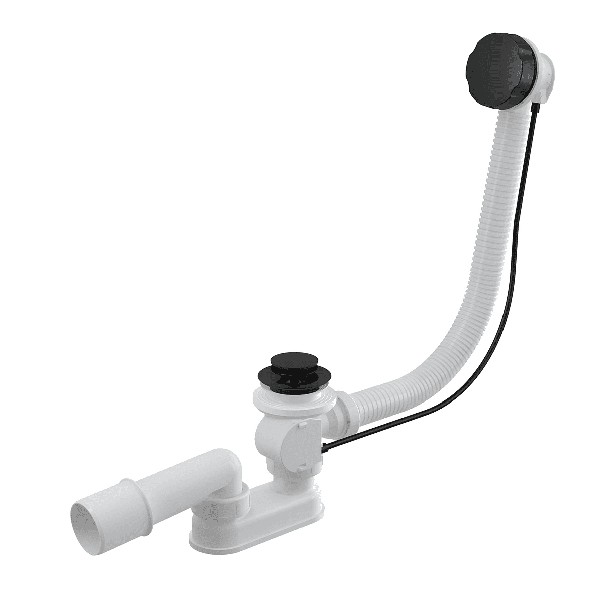 В комплекте: корпус сифона с системой перелива, хромированный накладка управления с покрытием черный-матовый, металлическая вилка с черным матовым покрытием, металлическая решетка с черным матовым покрытием, монтажный комплект, профильное уплотнение, гидрозатвор сифона из полипропилена, сваренный ультразвуковым методом, устойчив к термическим и химическим воздействиям.