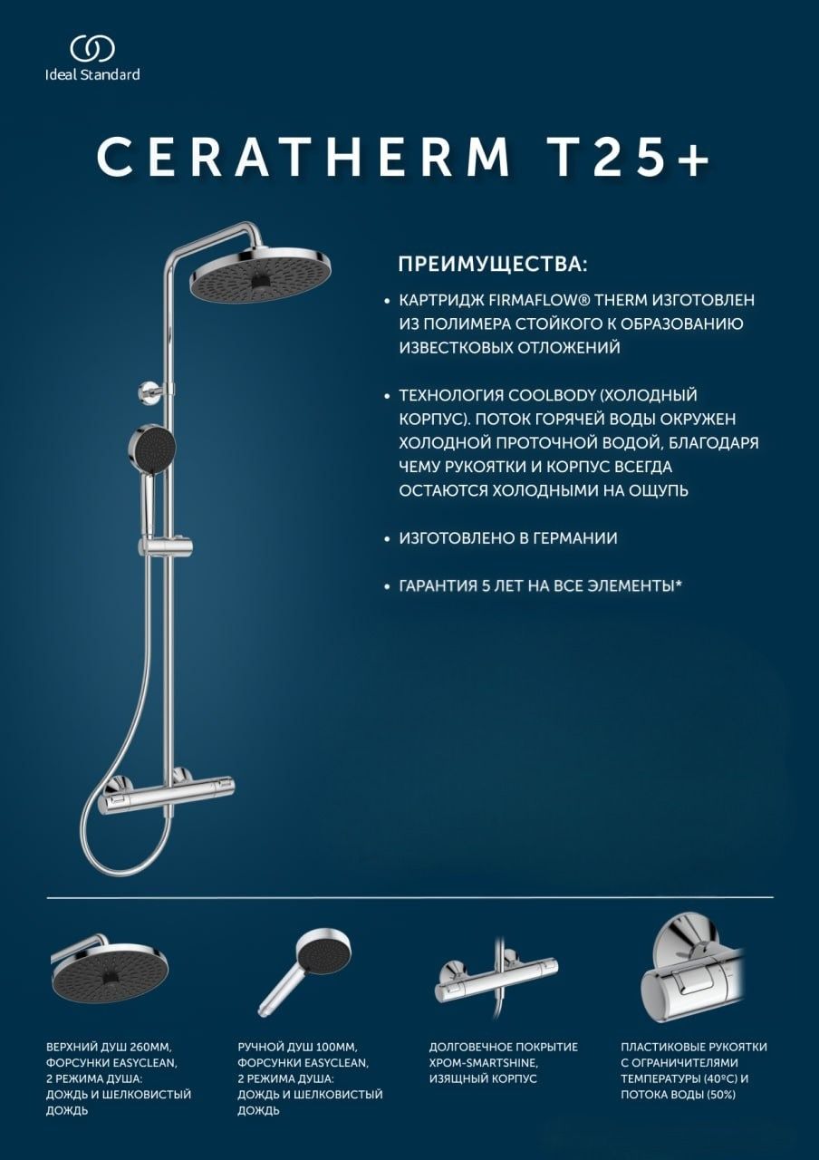 Душевая система Ideal Standard Ceratherm T25+ хром с термостатом