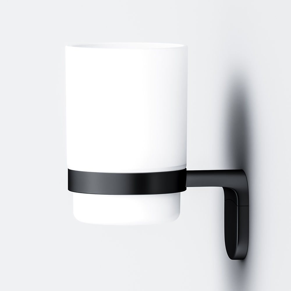 Стакан с настенным держателем в глубоком черном цвете из коллекции X-Joy чтобы самое необходимое всегда было под рукой. Идеально впишется в современную ванную комнату и будет радовать глаз каждый день. Матовое стекло отличается прочностью и легкостью в уборке. Держатель плотно прилегает к стене и не расшатывается за счет специального шурупного крепления. Уплотнительный элемент между стеклянным стаканом и его держателем надежно фиксирует приспособление. Выполнен в современном дизайне легко комбинируется с другими продуктами бренда.
