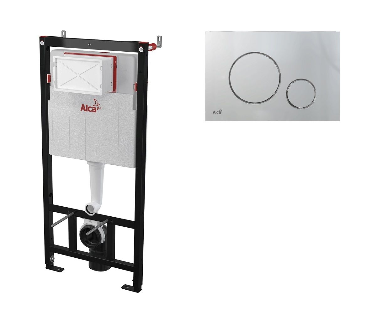 Инсталляция для унитаза AlcaDrain (AlcaPlast) AM101/1120 с клавишей смыва M672 (хром матовый)