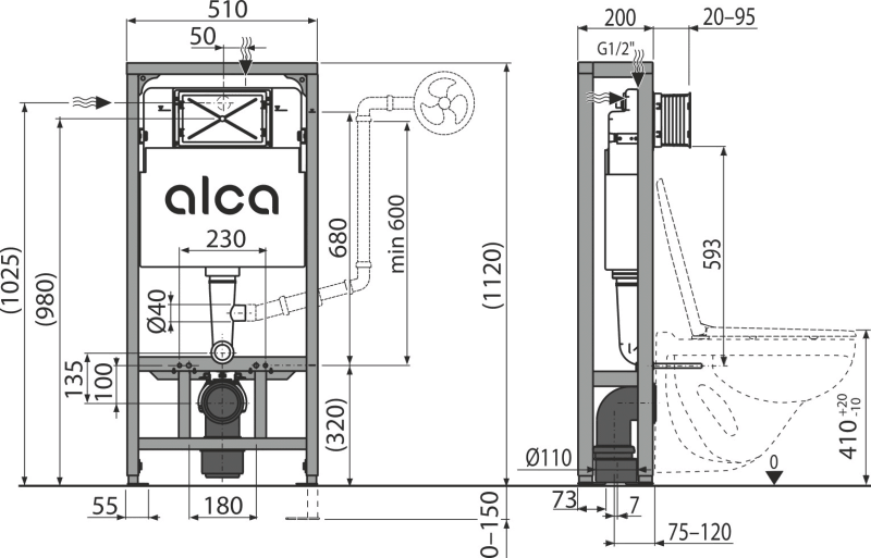 Инсталляция для унитаза AlcaDrain (AlcaPlast) AM116/1120 для сухой установки (в пространство)