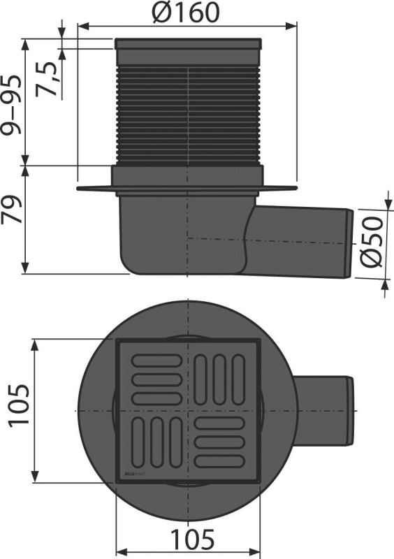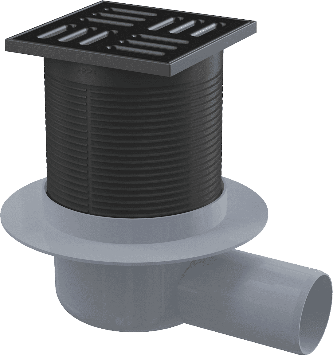 Душевой трап AlcaDrain (AlcaPlast) Smart APV31BLACK 105×105 мм с боковым стоком — идеальное решение для внутренних помещений с нерегулярным использованием (прачечные, котельные, подвалы). Черная матовая решетка из нержавеющей стали стильно дополнит интерьер, а регулируемая по высоте горловина (9–95 мм) и изоляционный воротник обеспечат удобный монтаж гидроизоляции пола. Боковое подключение к канализации Ø50 мм и комбинированный гидрозатвор SMART с водяным столбом и механической заслонкой надежно защищают от неприятных запахов. Материалы — прочный полипропилен и нержавеющая сталь AISI 304 — гарантируют долговечность и устойчивость к повреждениям. Совместим с другими элементами системы гидрозатворов SMART.
