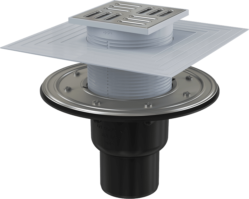 Душевой трап AlcaDrain (AlcaPlast) APV4344 — идеальное решение для ванных комнат и открытых пространств. Регулируемая по высоте горловина (25–95 мм) и широкий изоляционный воротник 2-го уровня из нержавеющей стали обеспечивают удобный монтаж гидроизоляции и надежное армирование стяжки под плиткой. Прямое подключение к канализации Ø50/75 мм гарантирует эффективный слив, а легко чистящийся сифон предотвращает засоры. Возможность использования мокрого гидрозатвора для помещений с частым стоком воды и сухого — для морозных условий. Гидрозатвор надежно защищает от запахов, а материалы — полипропилен и нержавеющая сталь AISI 304 — обеспечивают долговечность и устойчивость к повреждениям. Совместим с гидрозатворами SMART и другими элементами системы.