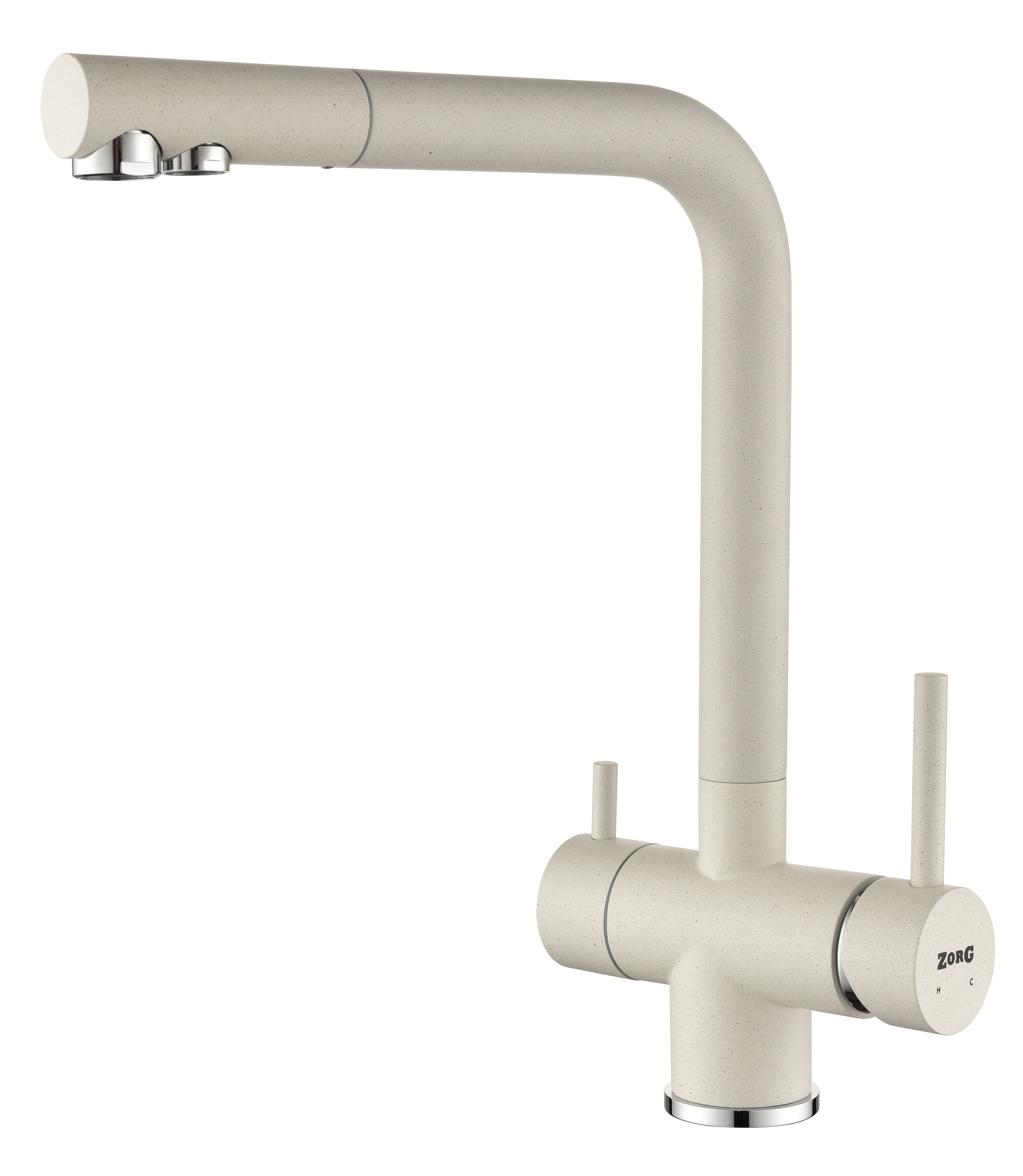 Простой в установке на мойку или столешницу, этот смеситель гармонично вписывается в интерьер любой кухни, добавляя современный акцент и сохраняя порядок. Его компактные габариты разработаны с учетом комфорта в ежедневном использовании, позволяя свободно обращаться с ним даже в ограниченном пространстве, а встроенный кран для питьевой воды и надежный керамический картридж гарантируют быстрый доступ к чистой воде и бесперебойную работу без лишних хлопот. Поворотный излив, вращающийся на 360 градусов, обеспечивает максимальную маневренность при наполнении объемных емкостей или мытье крупных предметов, делая процесс максимально удобным и интуитивным.
