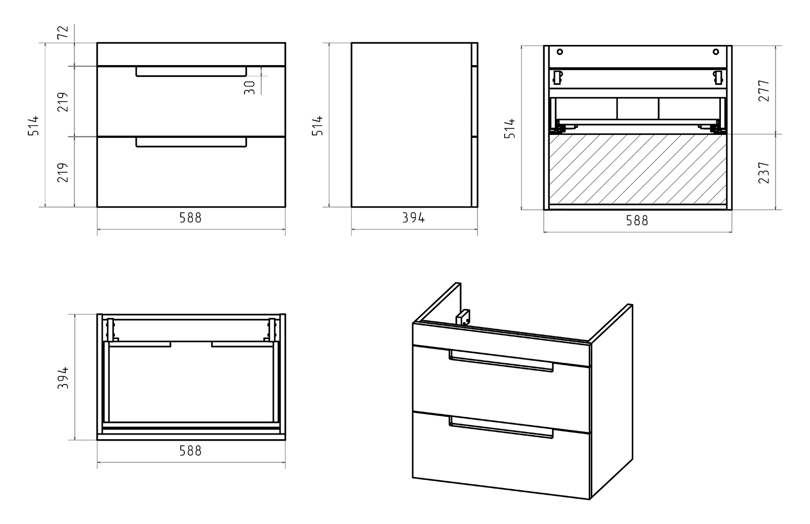 Тумба под раковину Brevita Ariana 60 подвесная с 2 ящ. / ARI-01060-0742Я белая эмаль