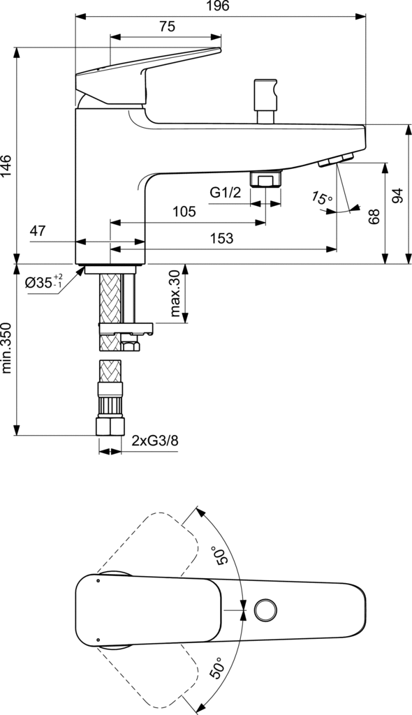 Смеситель для ванны Ideal Standard Ceraplan BD257AA хром