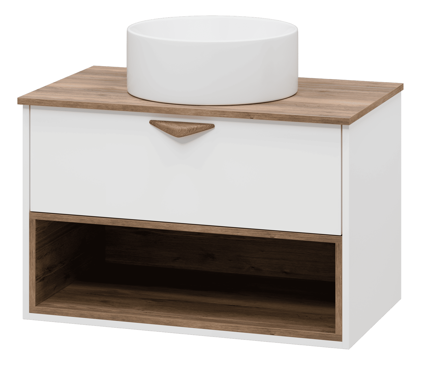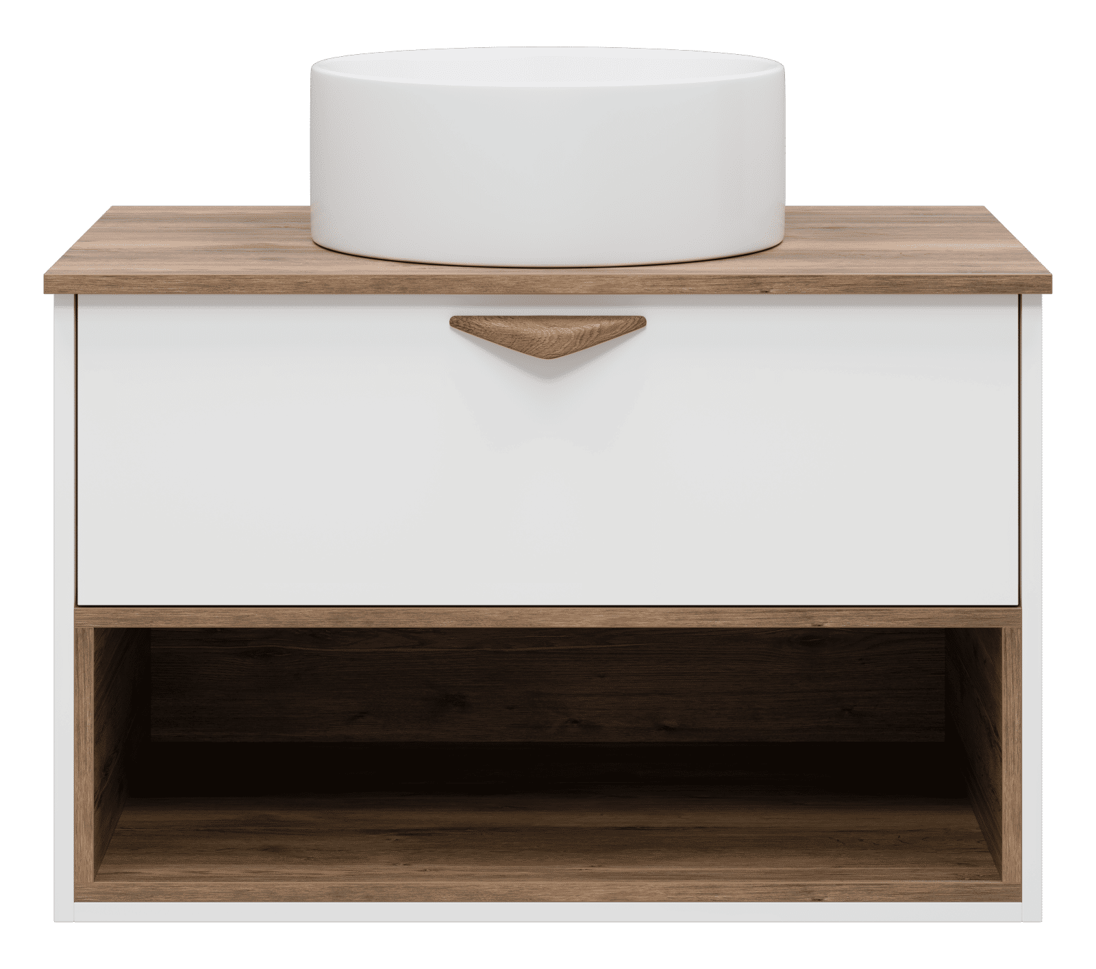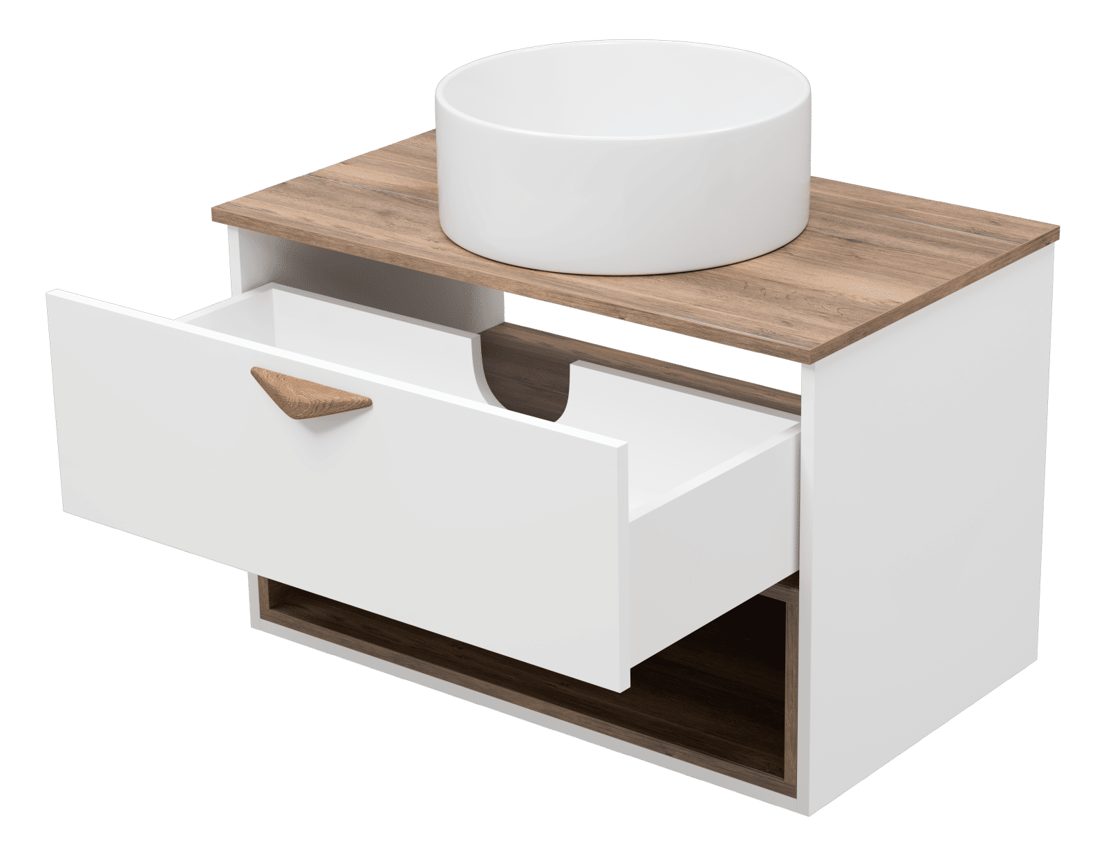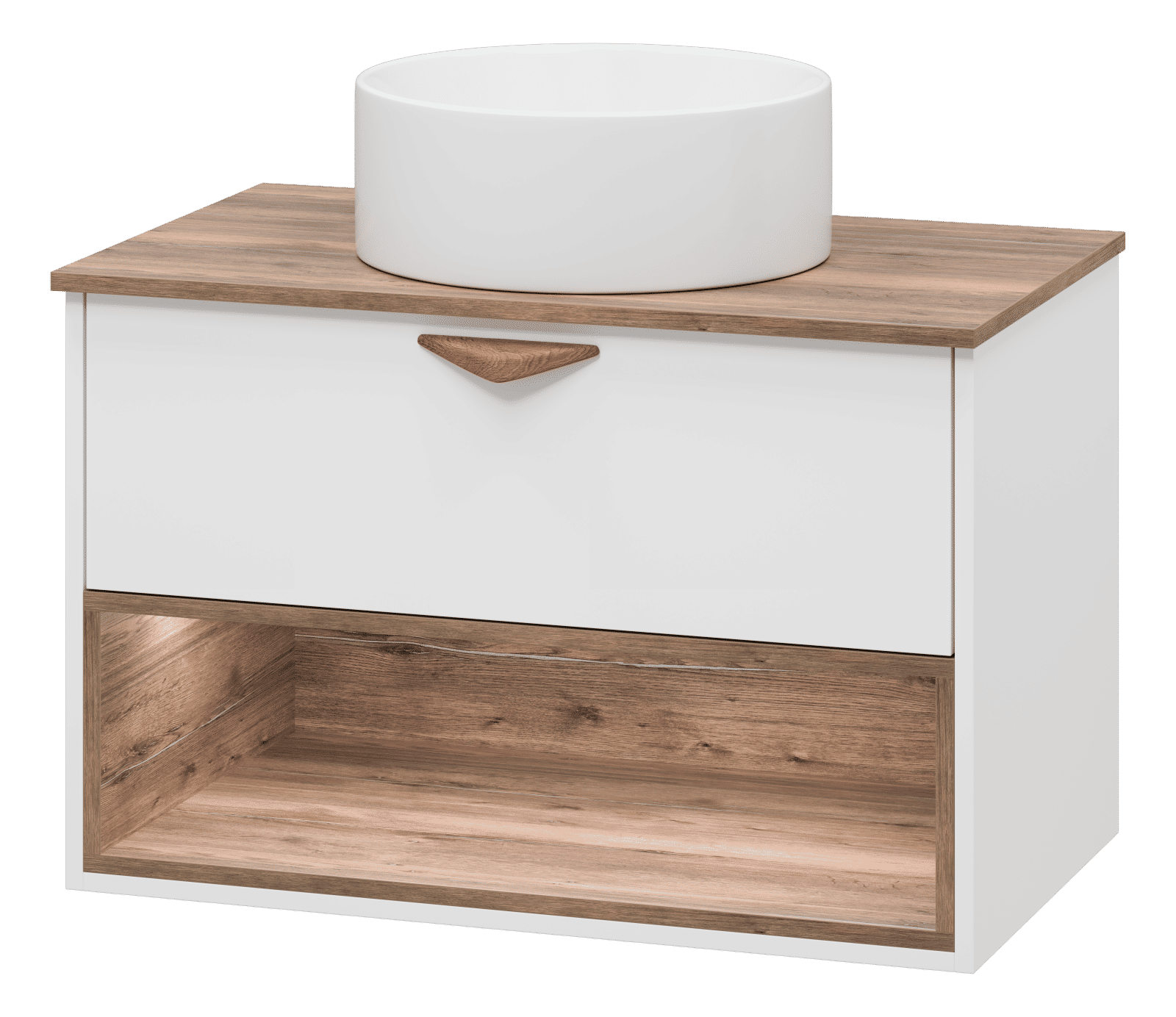 Тумба под раковину Brevita Bergen 80 подвесная с подсветкой 1 ящ. / BER-07080-19-01-1Я белый/темное дерево