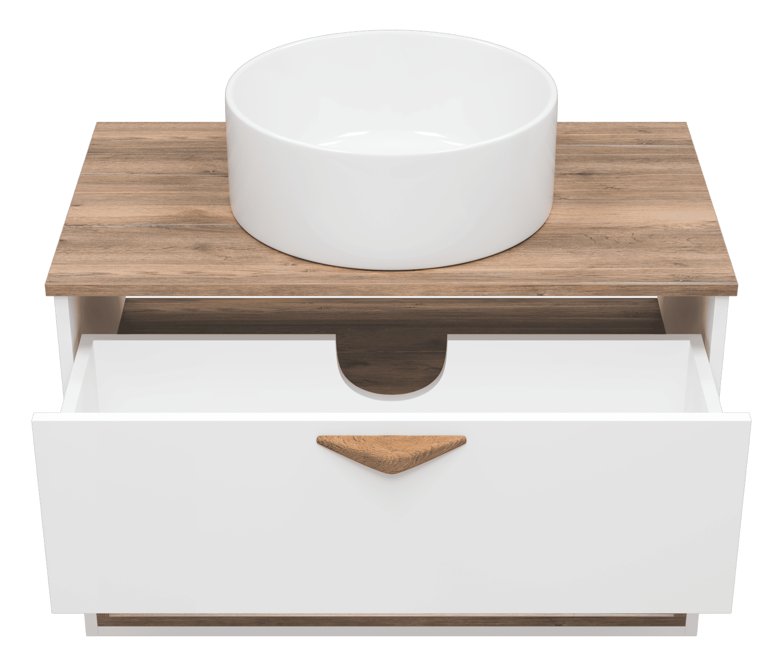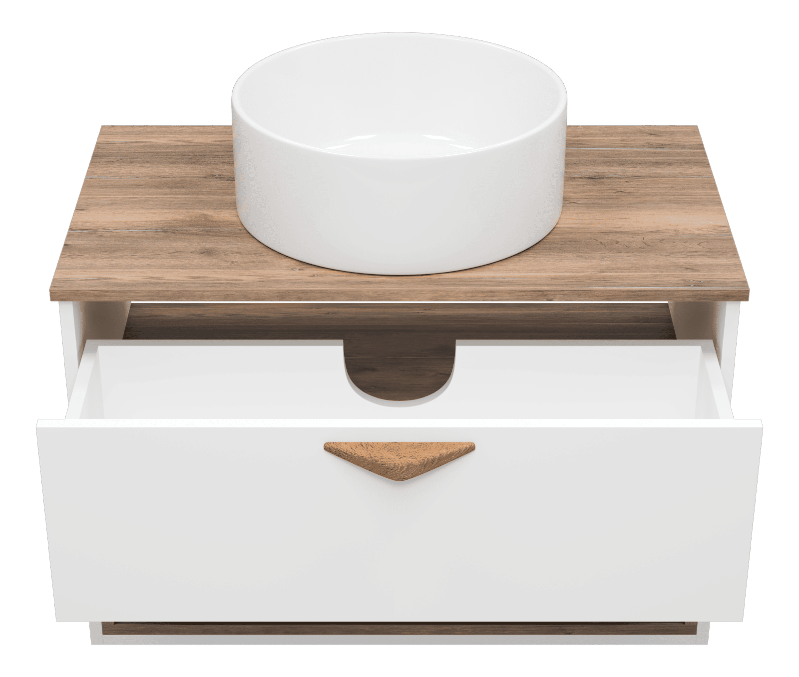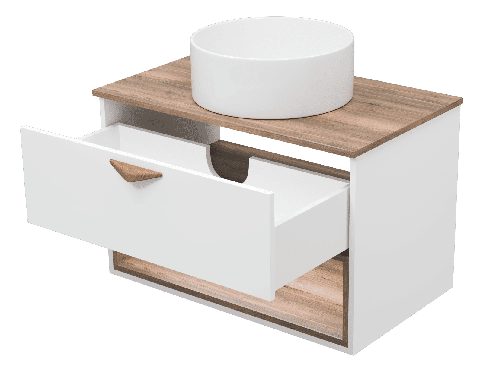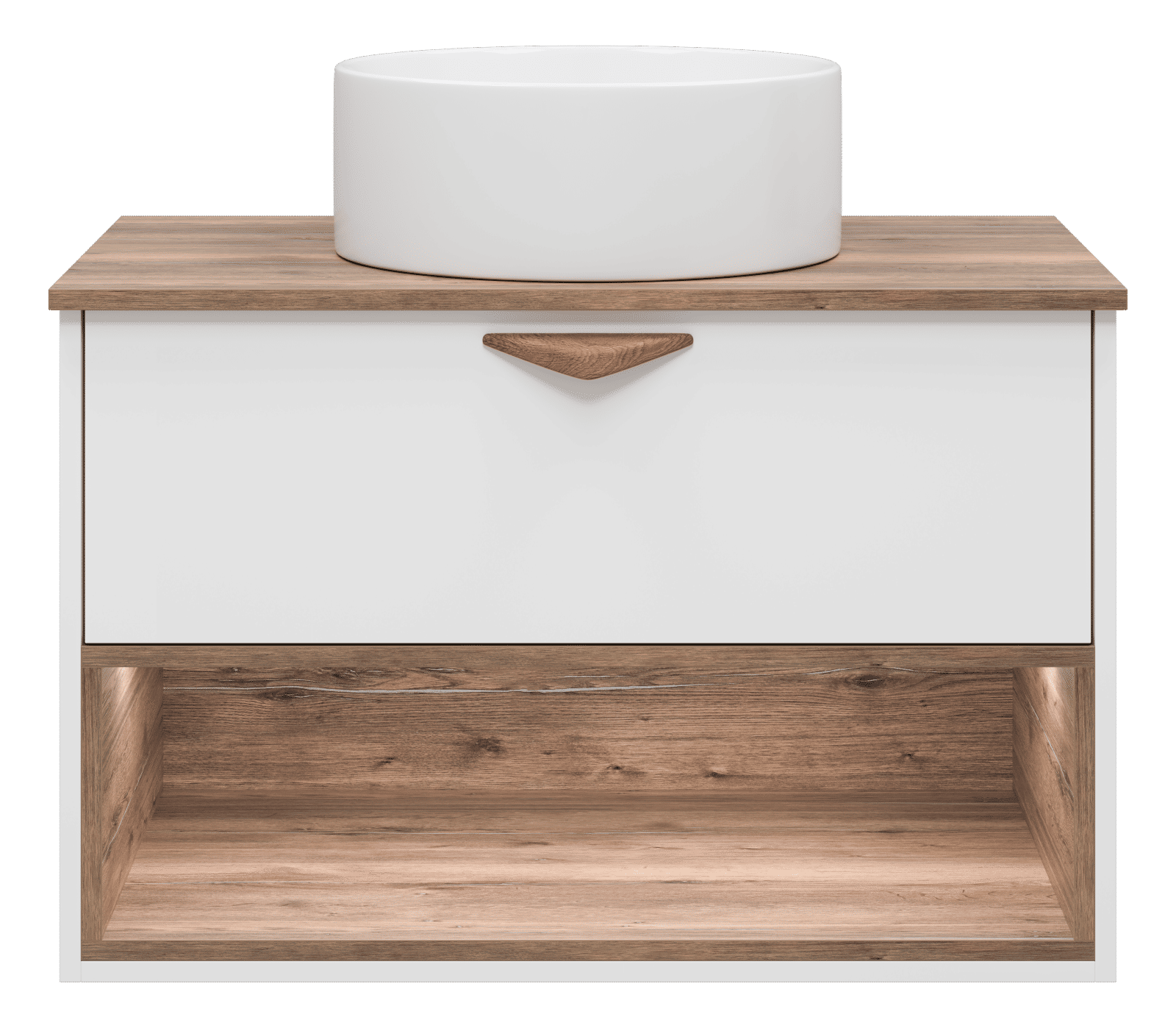 Тумба под раковину Brevita Bergen 80 подвесная с подсветкой 1 ящ. / BER-07080-19-01-1Я белый/темное дерево