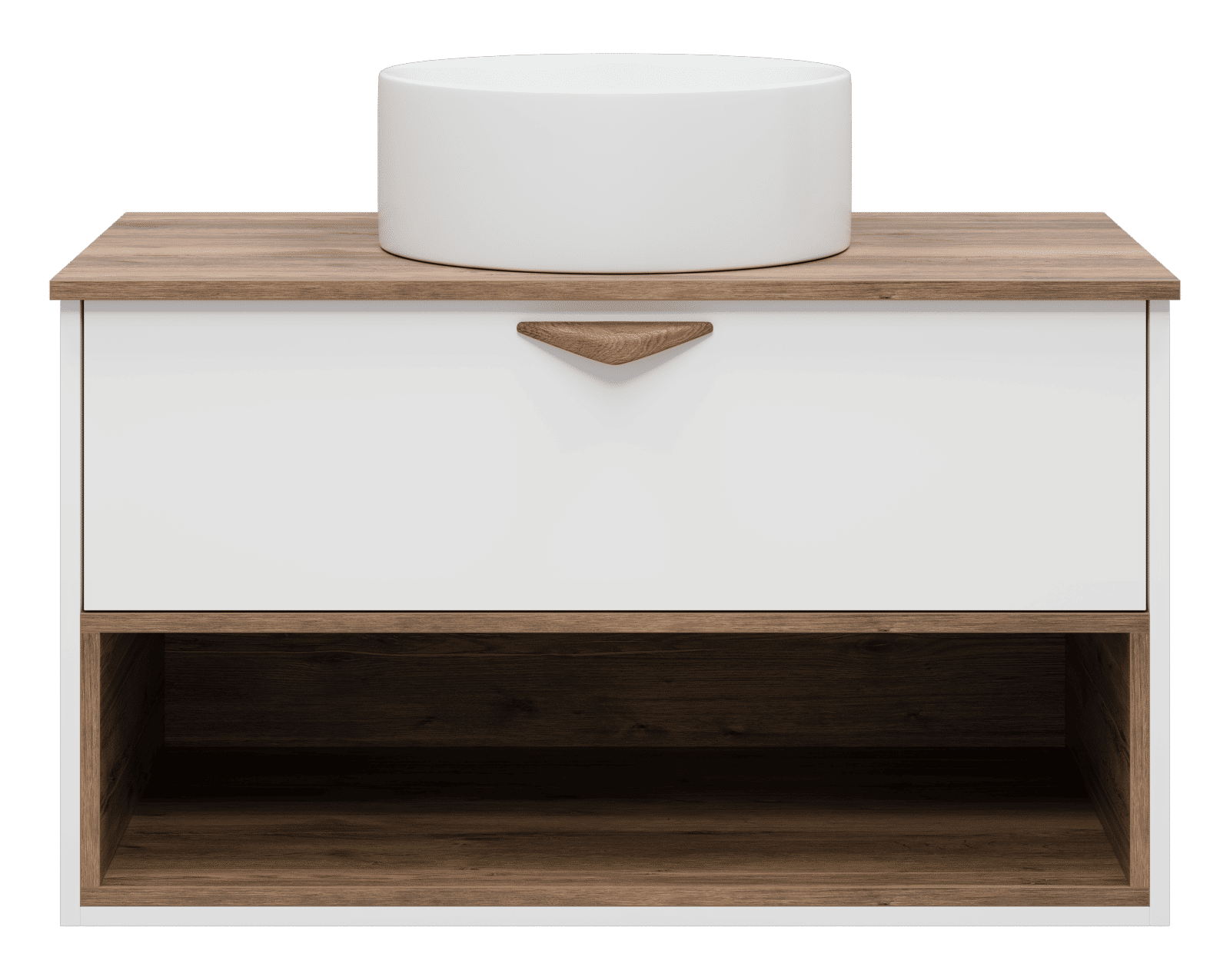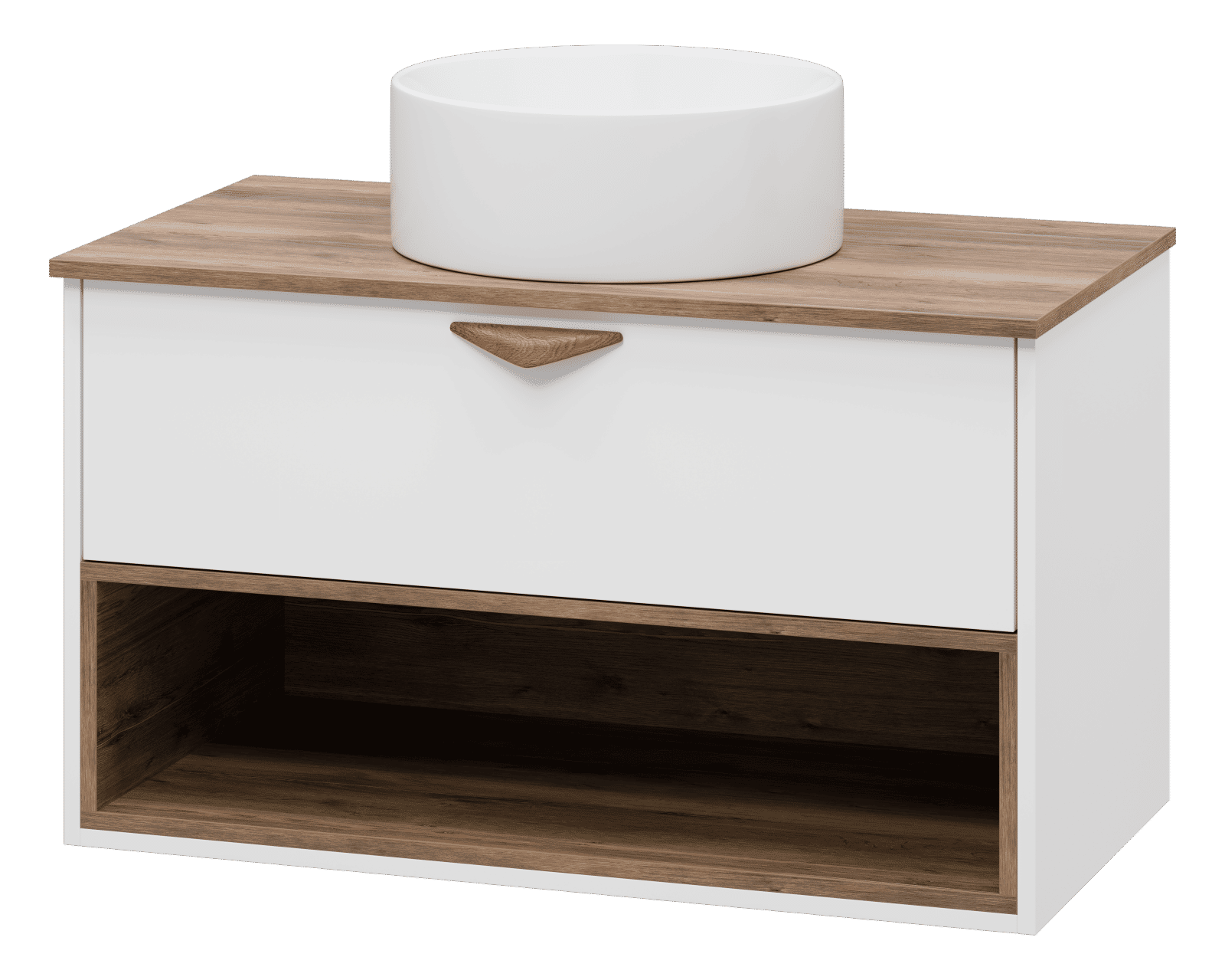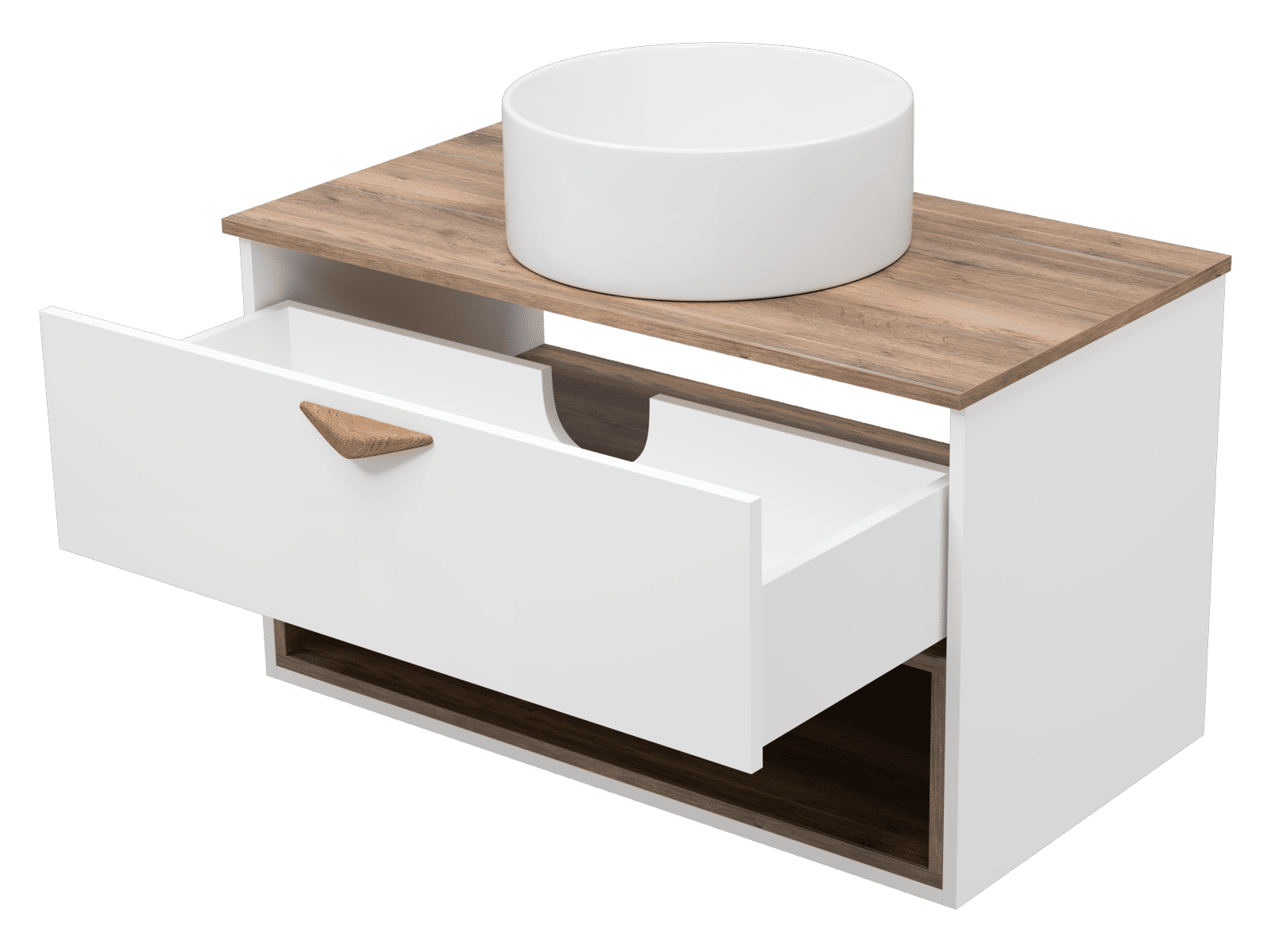 Тумба под раковину Brevita Bergen 90 подвесная с подсветкой 1 ящ. / BER-07090-19-01-1Я белый/темное дерево