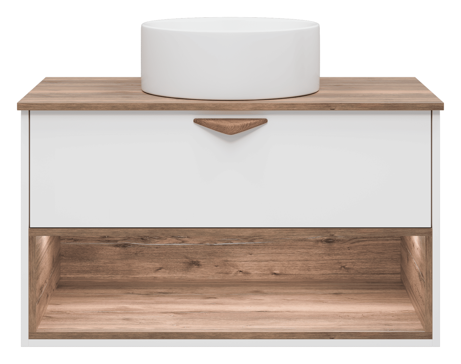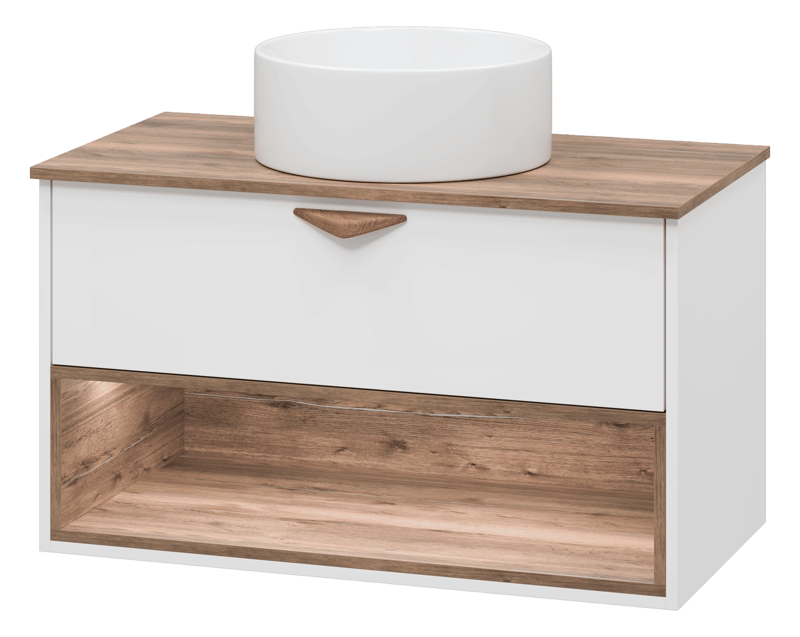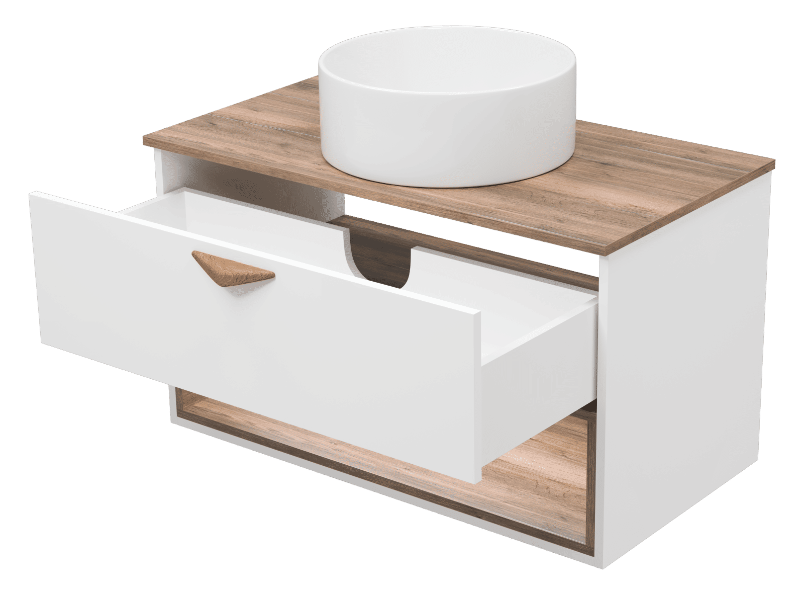 Тумба под раковину Brevita Bergen 90 подвесная с подсветкой 1 ящ. / BER-07090-19-01-1Я белый/темное дерево
