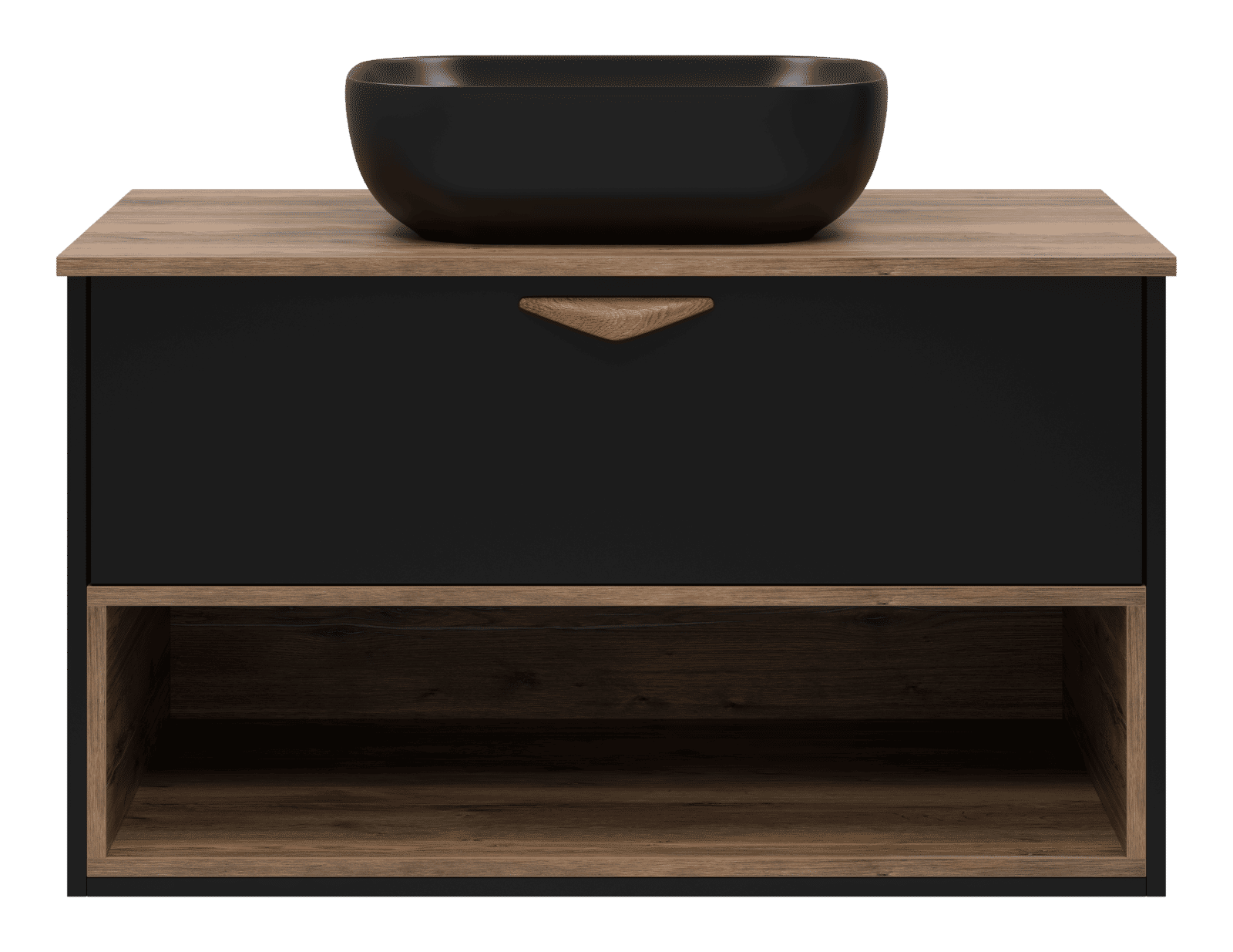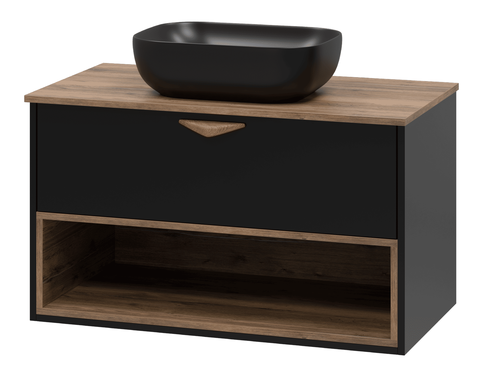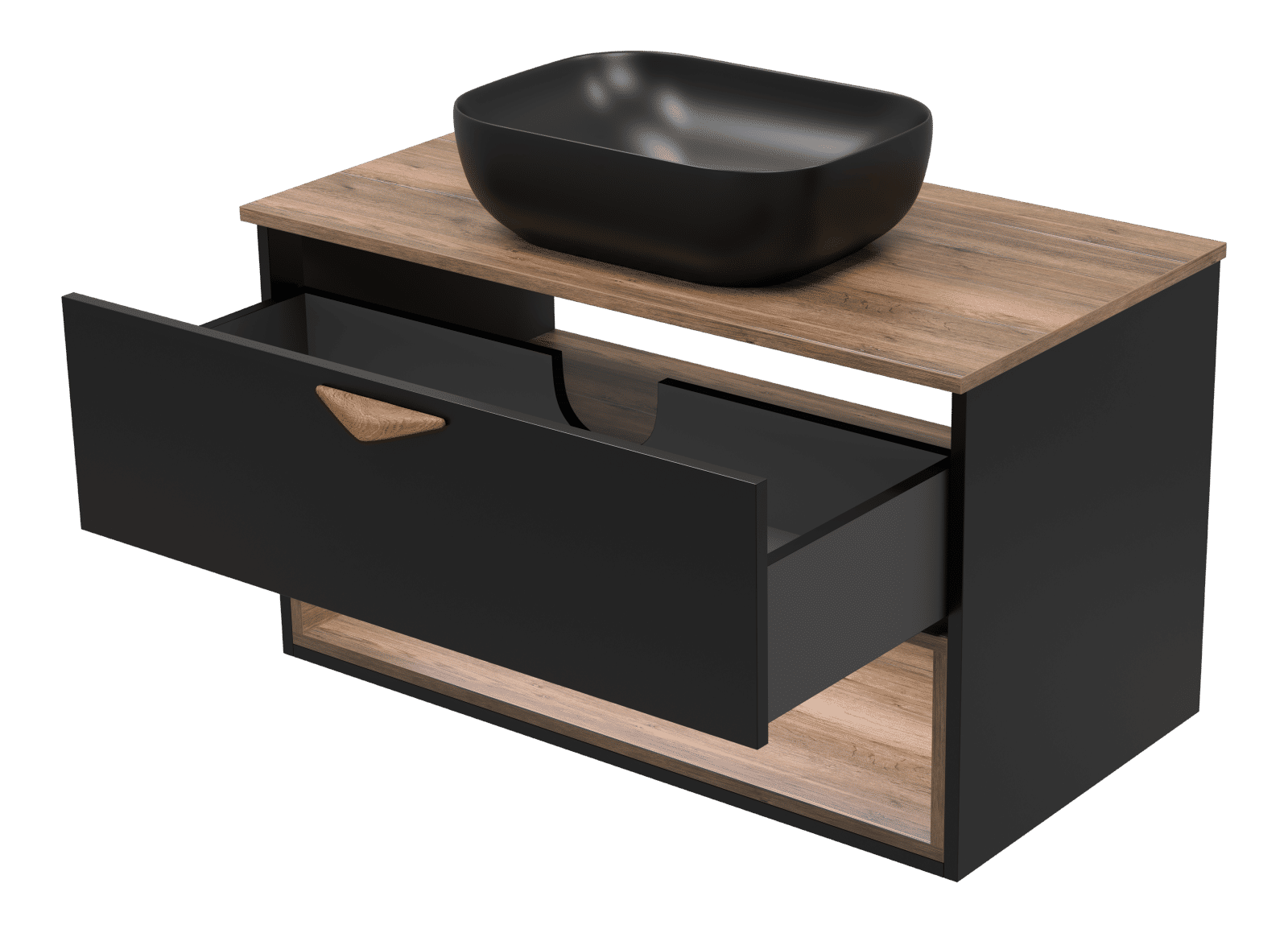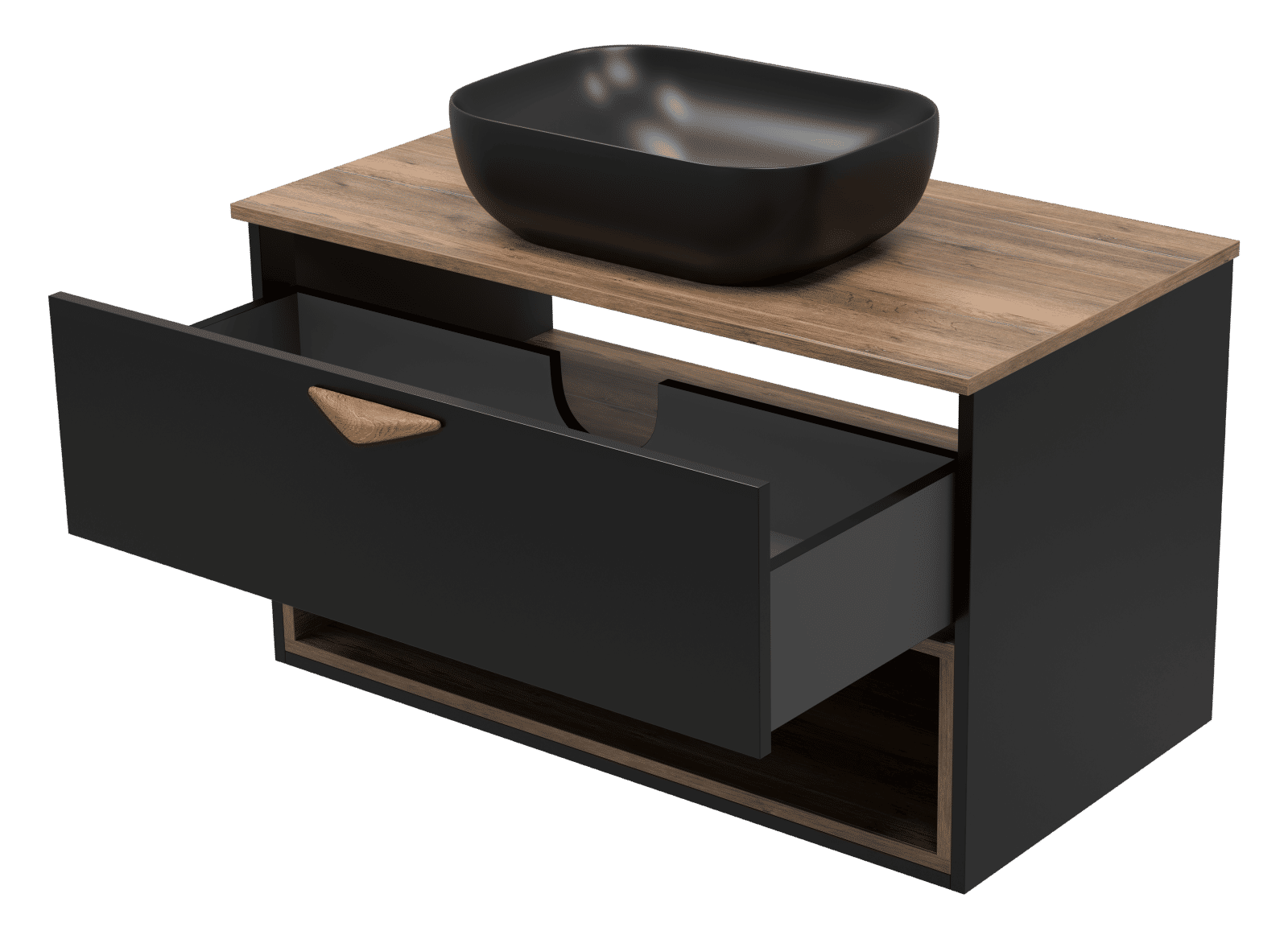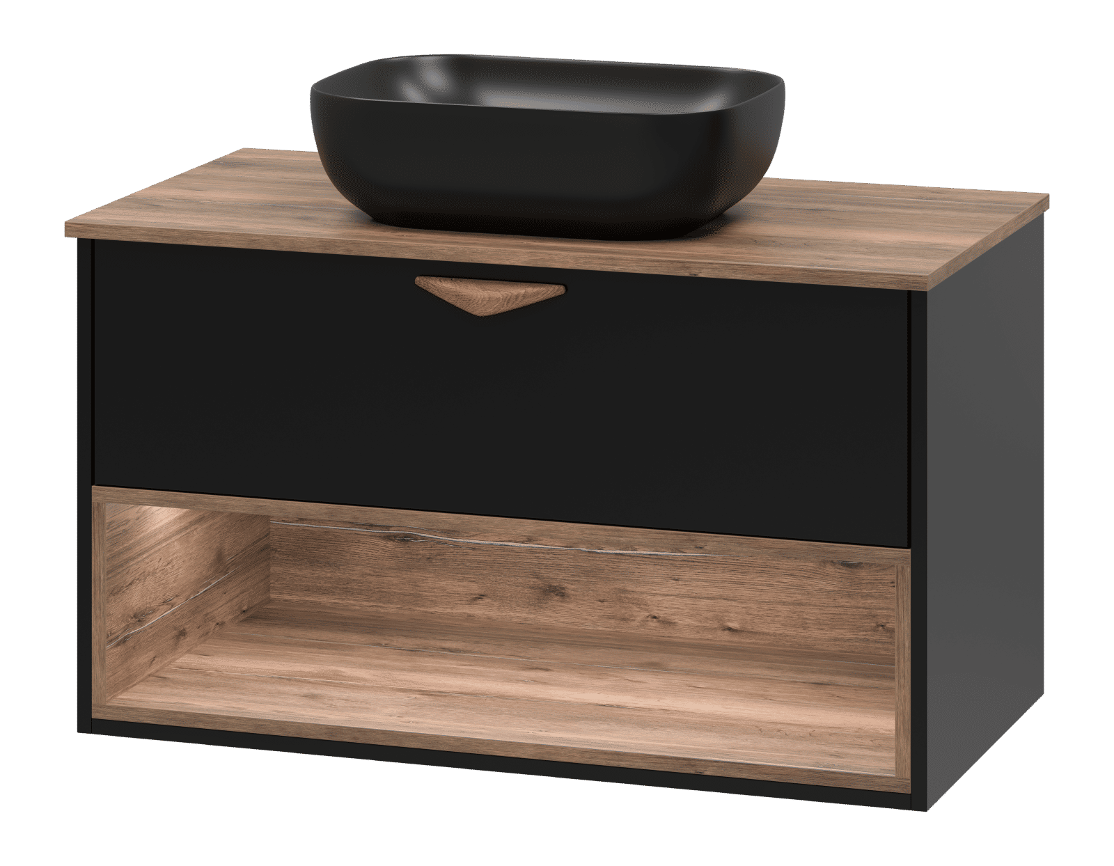 Тумба под раковину Brevita Bergen 90 подвесная с подсветкой 1 ящ. / BER-07090-19-02-1Я черный/темное дерево