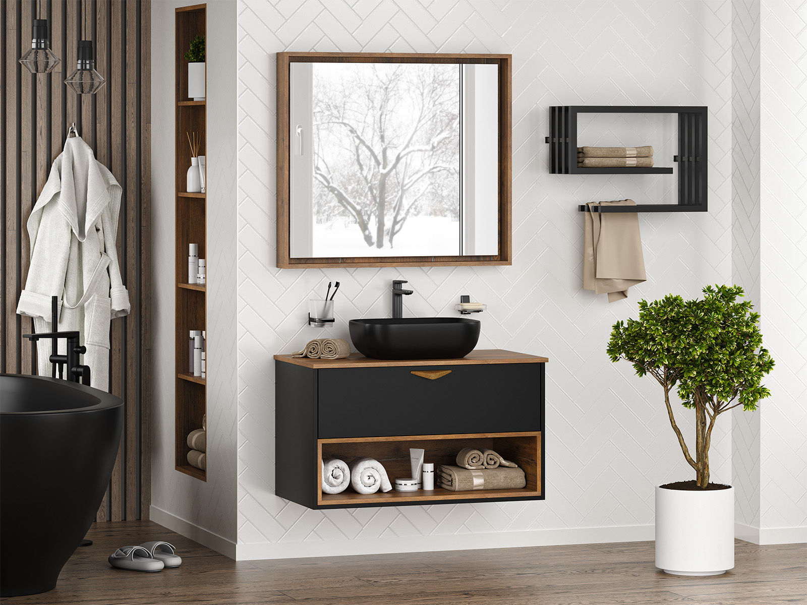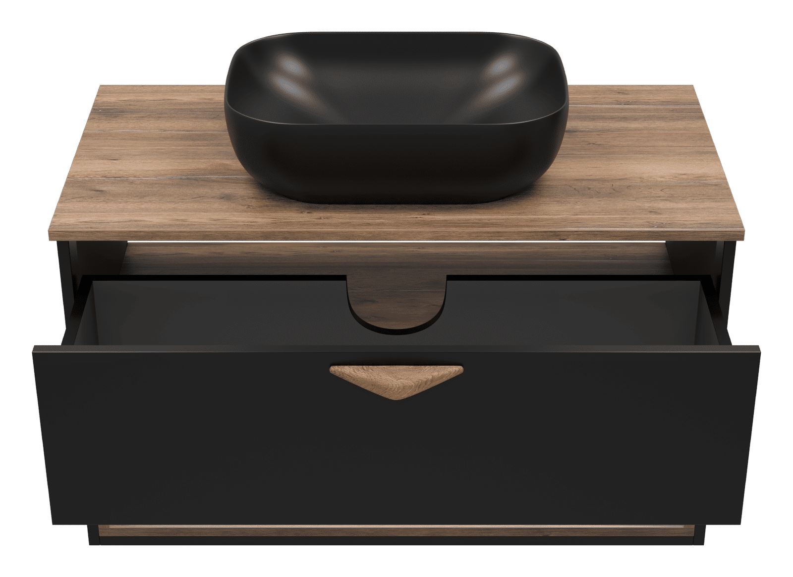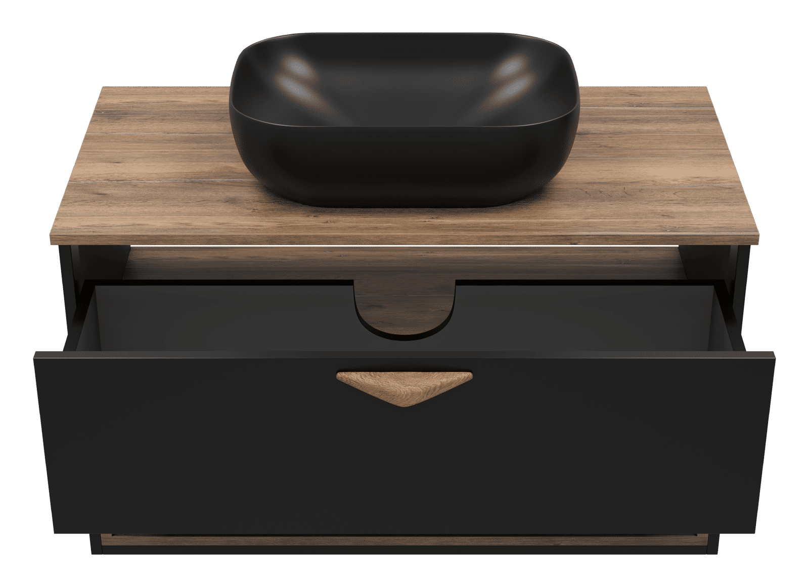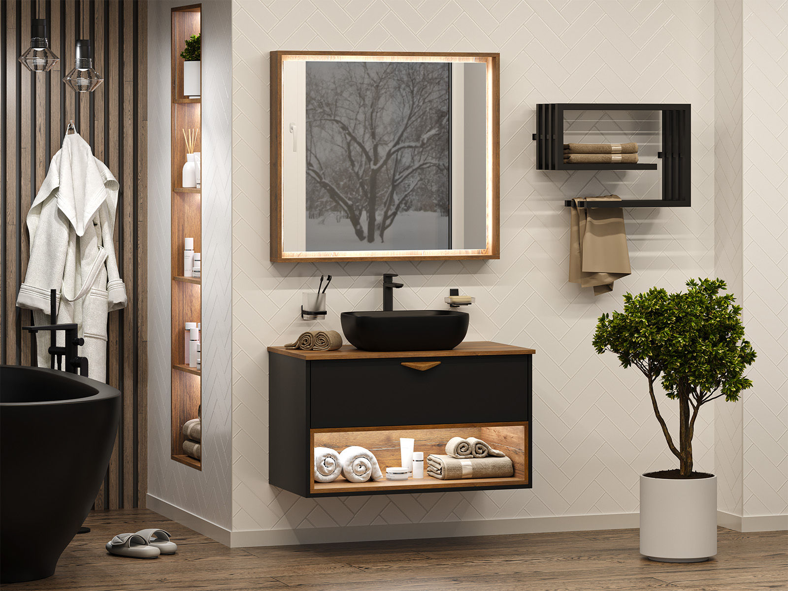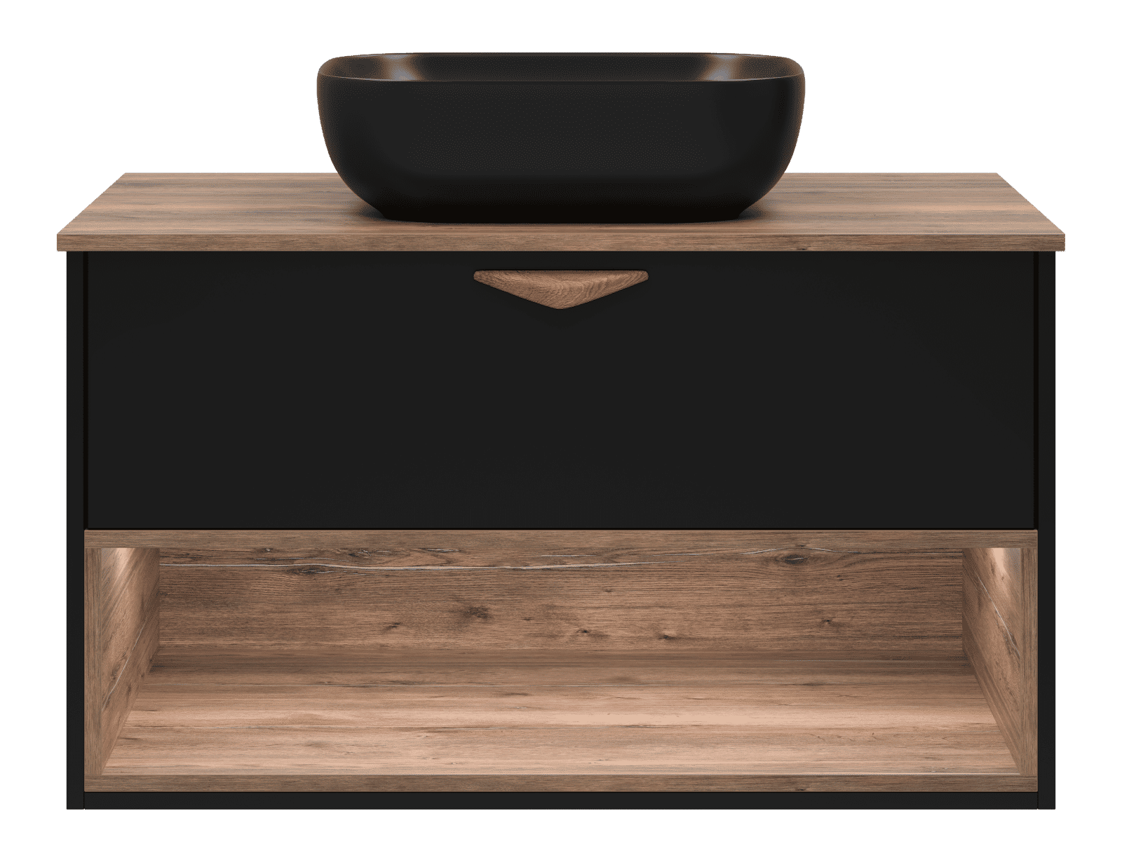 Тумба под раковину Brevita Bergen 90 подвесная с подсветкой 1 ящ. / BER-07090-19-02-1Я черный/темное дерево