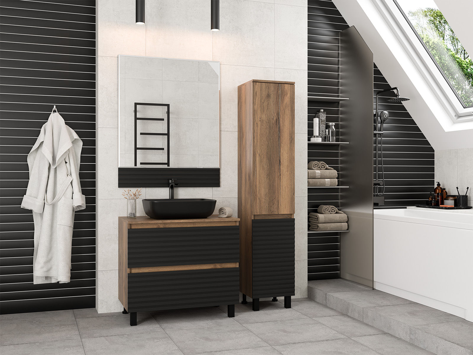 Тумба под раковину Brevita Dakota 80 напольная 2 ящ. / DAK-07080-19/02-2Я черный/темное дерево