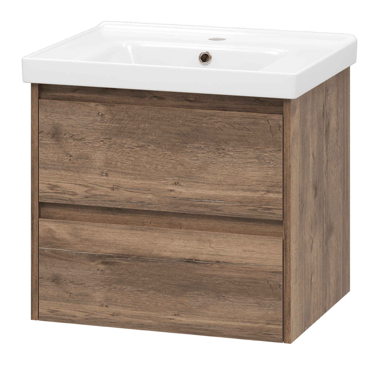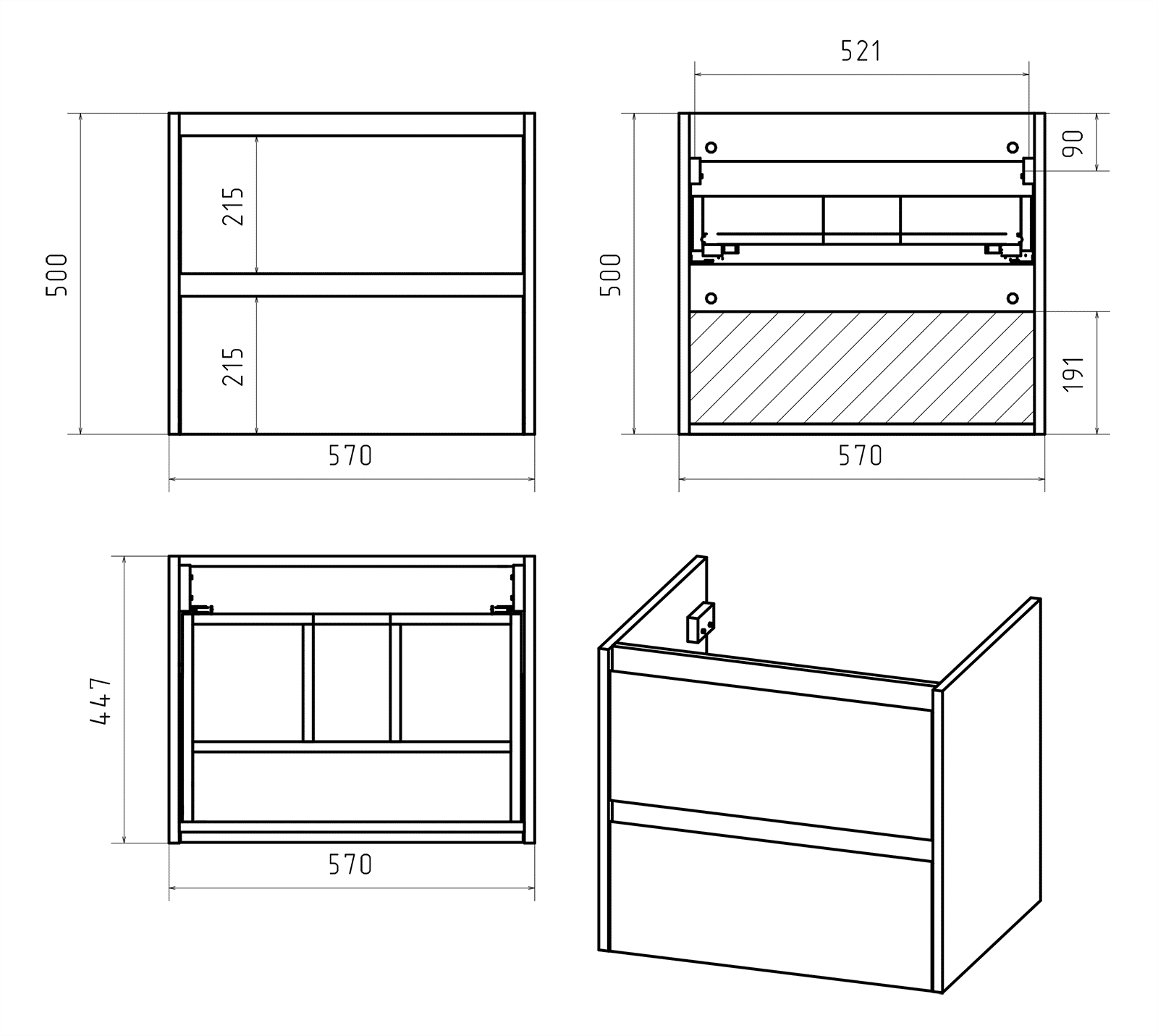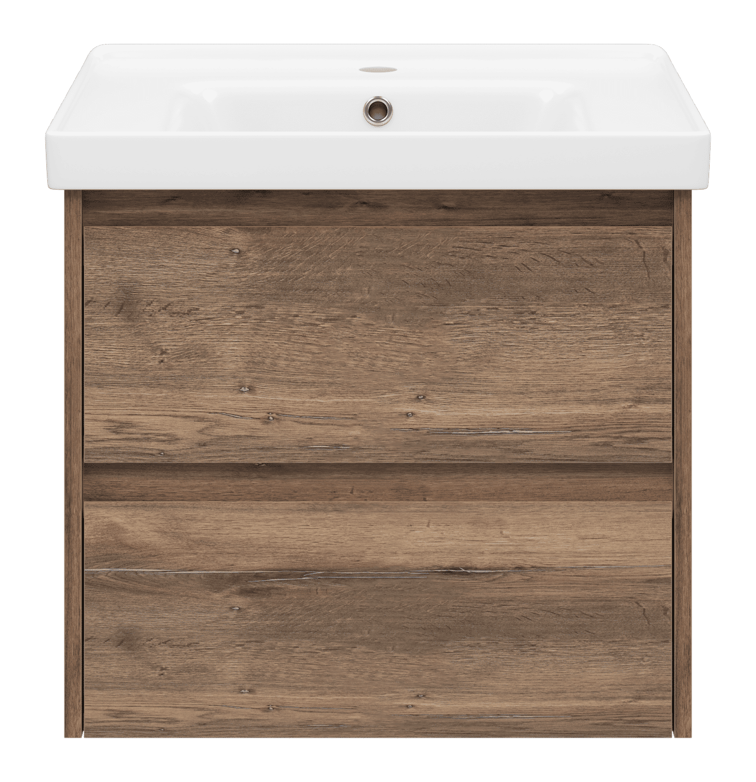 Тумба оснащена двумя выдвижными ящиками с доводчиками, где верхний ящик разделен на несколько отсеков, для удобного и компактного хранения ванных принадлежностей.